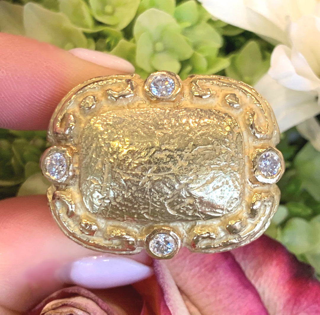 18k Yellow Gold Diamonds Designer Estate Earrings
