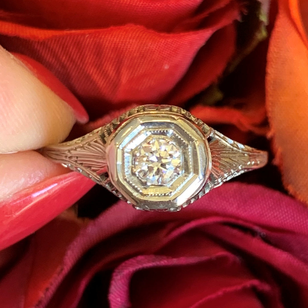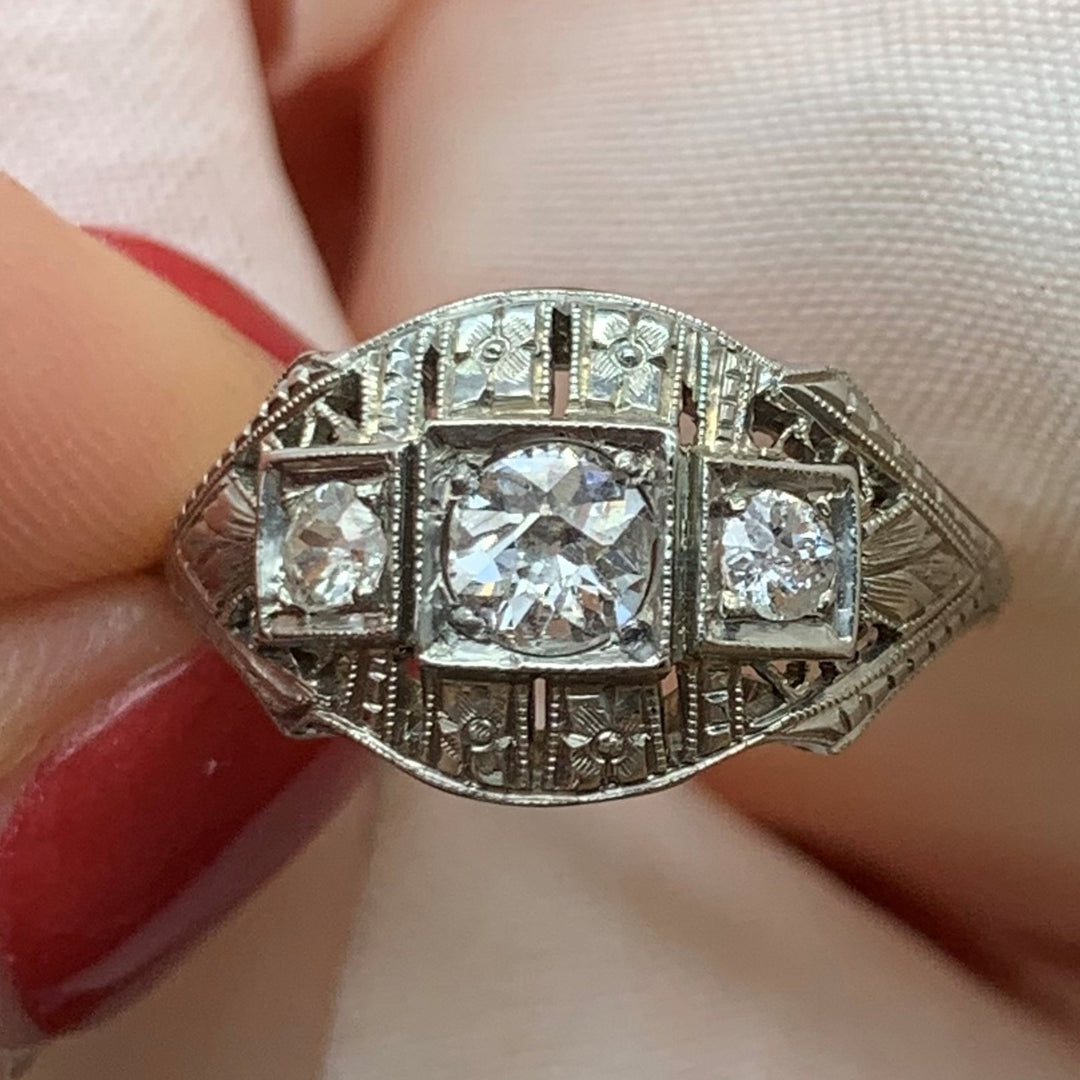 18k White Gold Art Deco Diamond Estate Ring