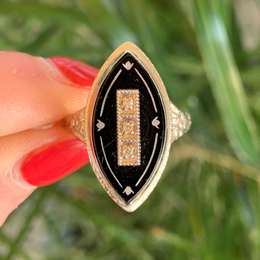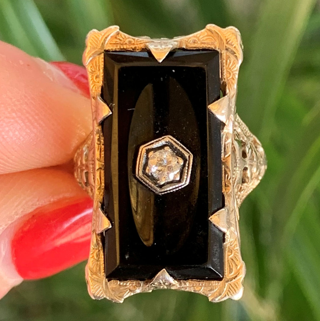 14k White Gold Onyx Estate Ring