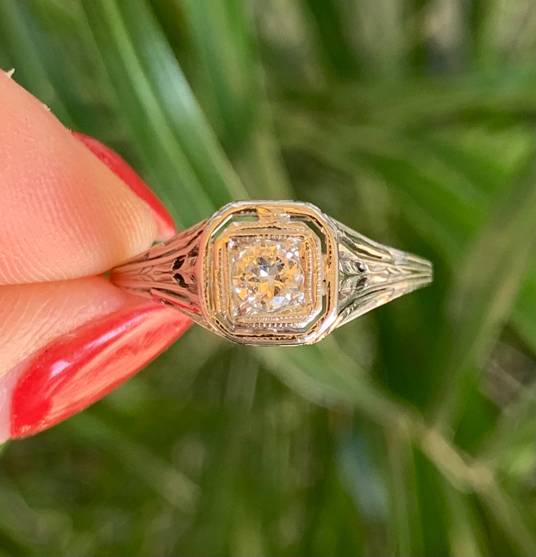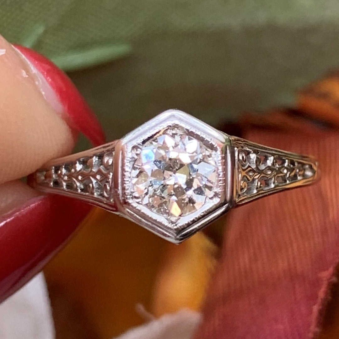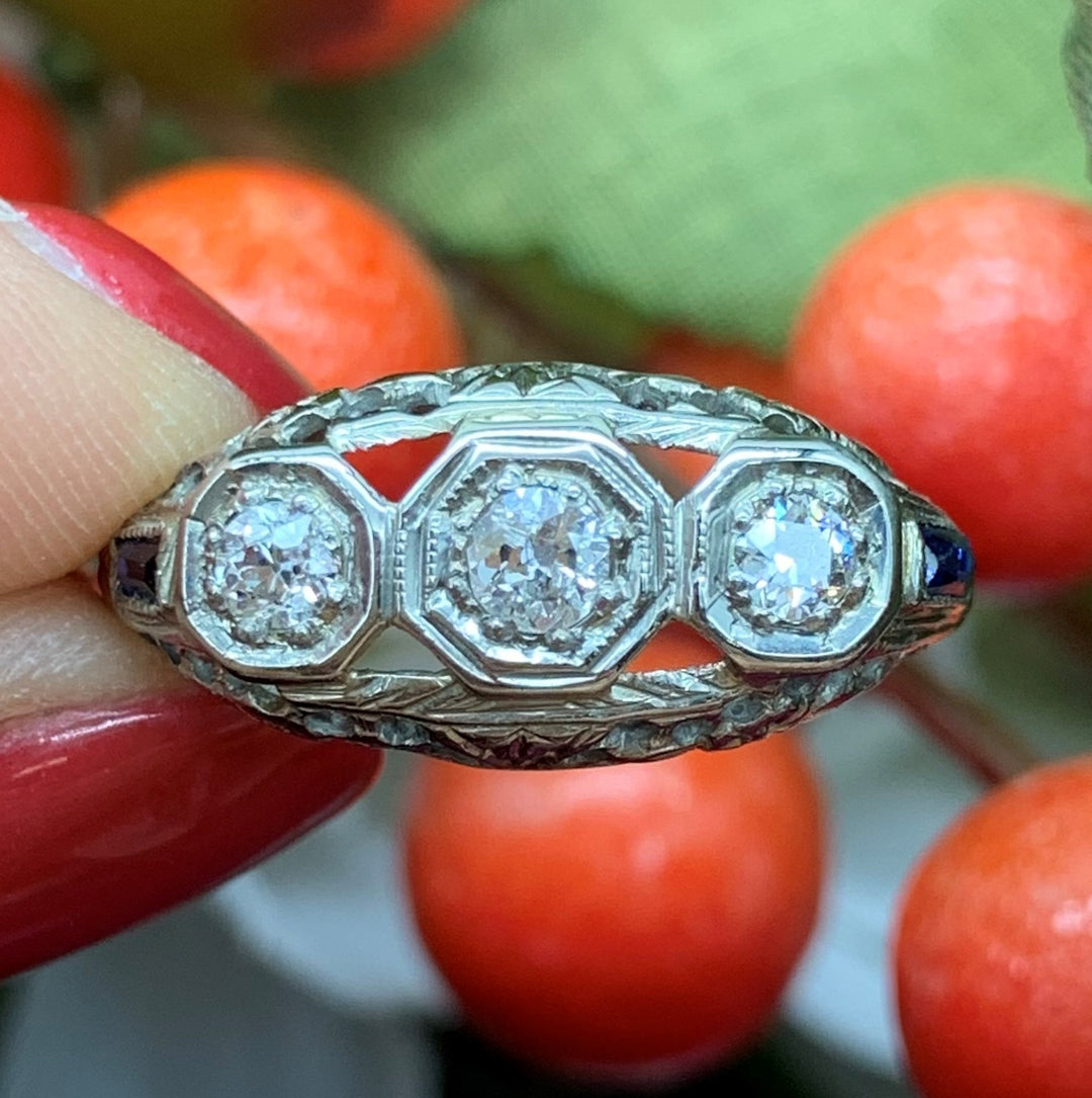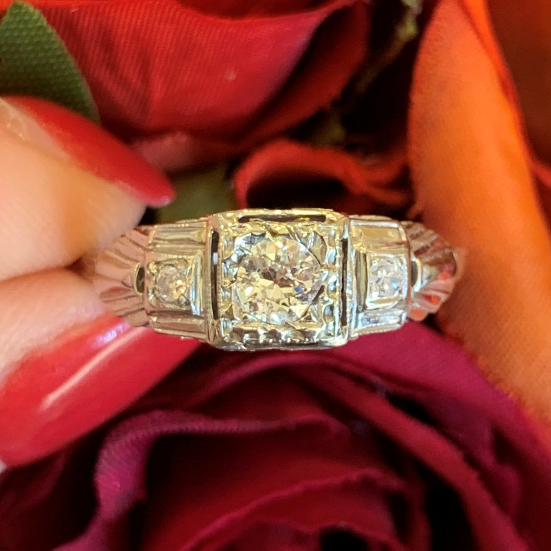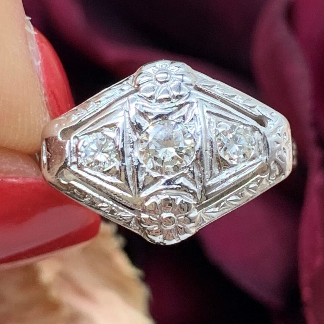 14k Yellow Gold 3 Stone Diamond Estate Ring