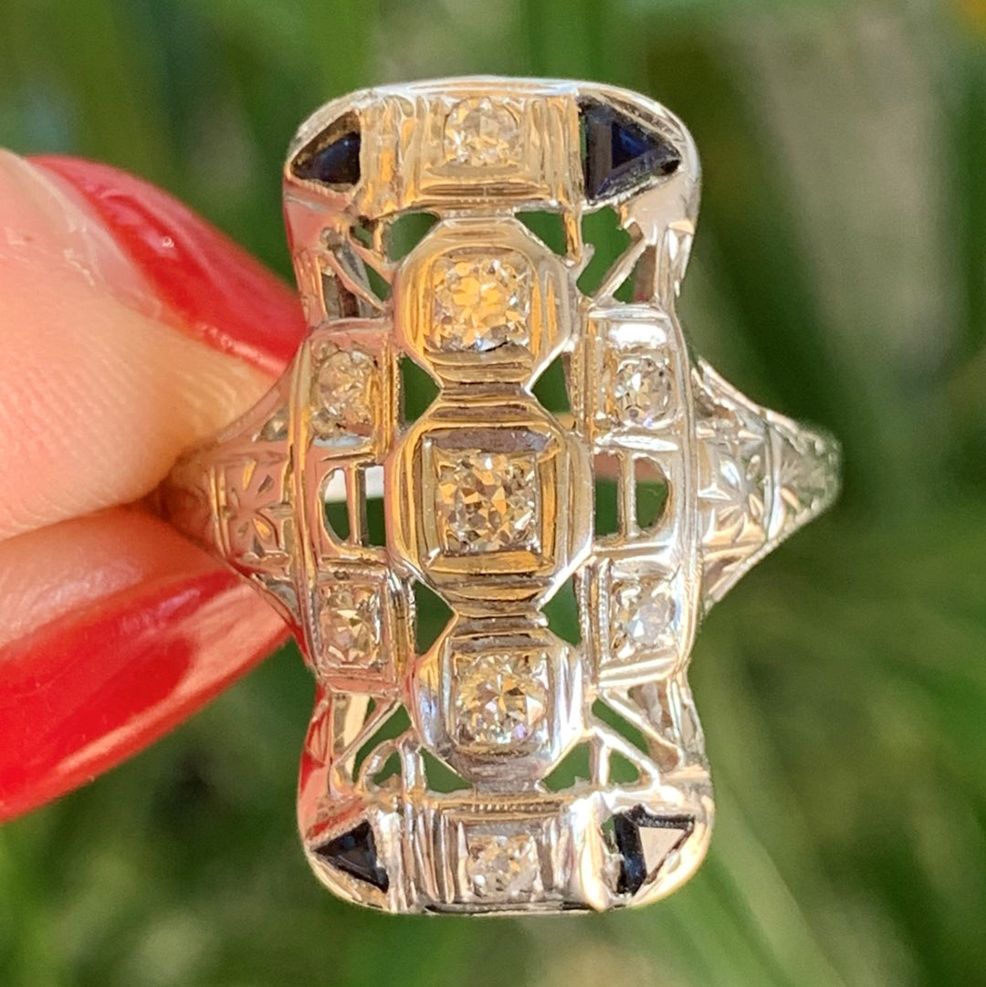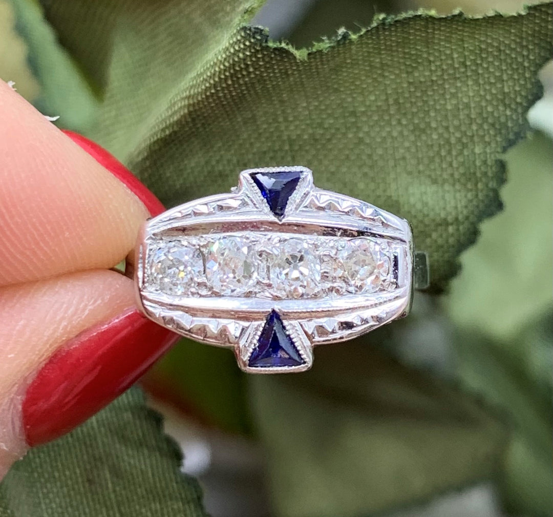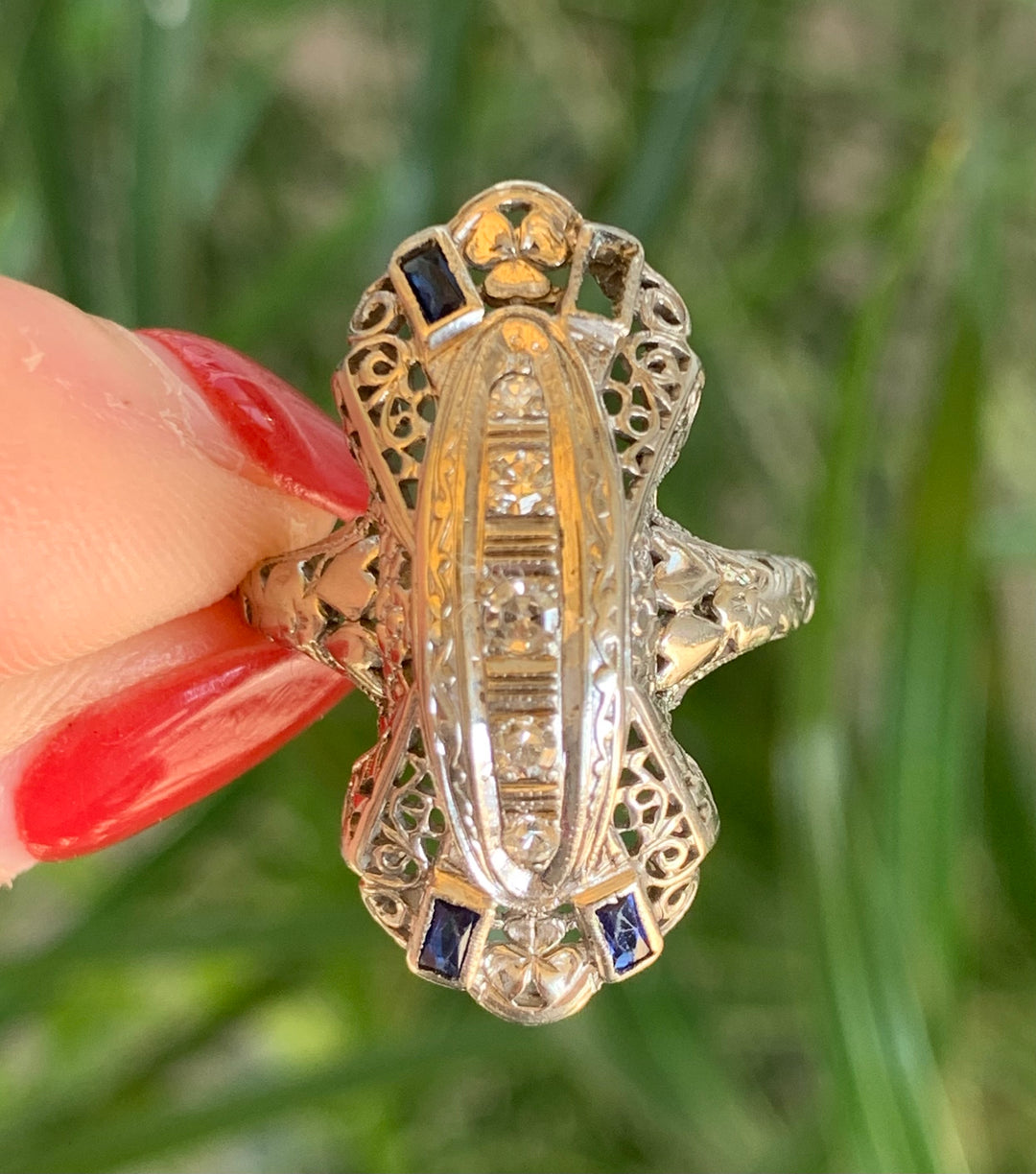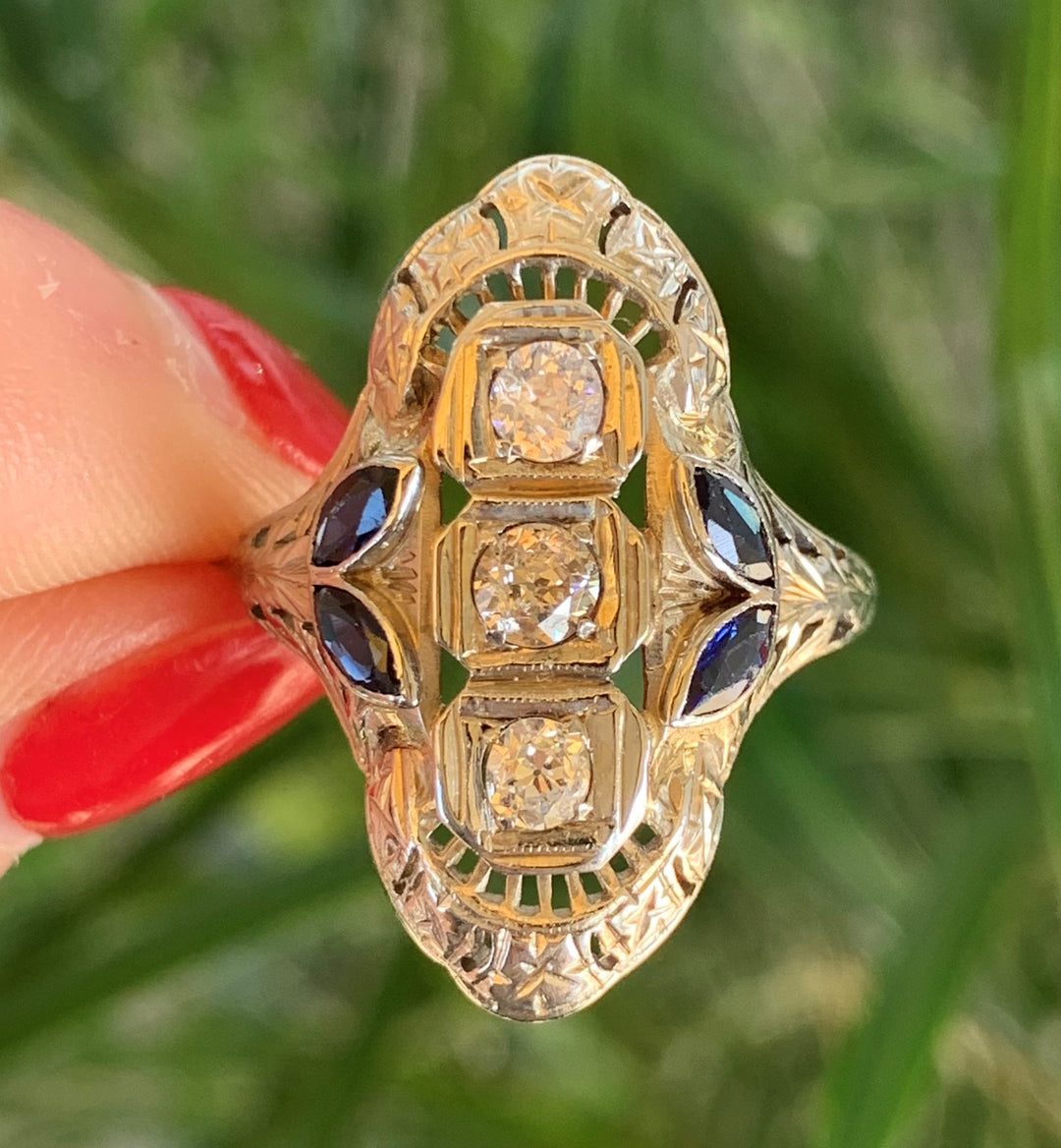 14k Yellow Gold Pearl Sapphire Estate Ring
