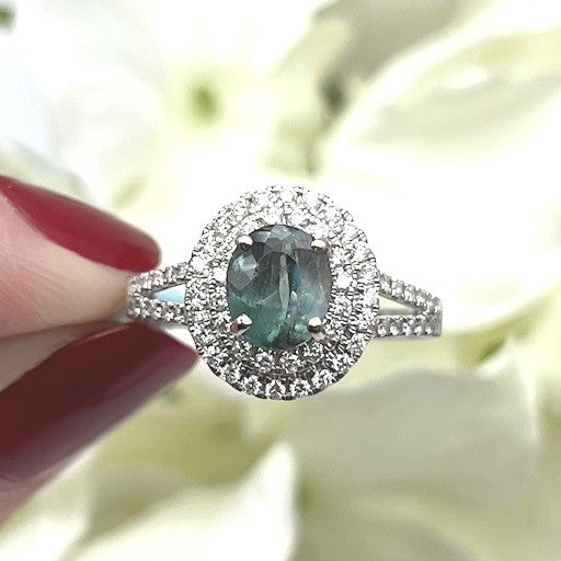 14k White Gold Tourmaline Halo Ring