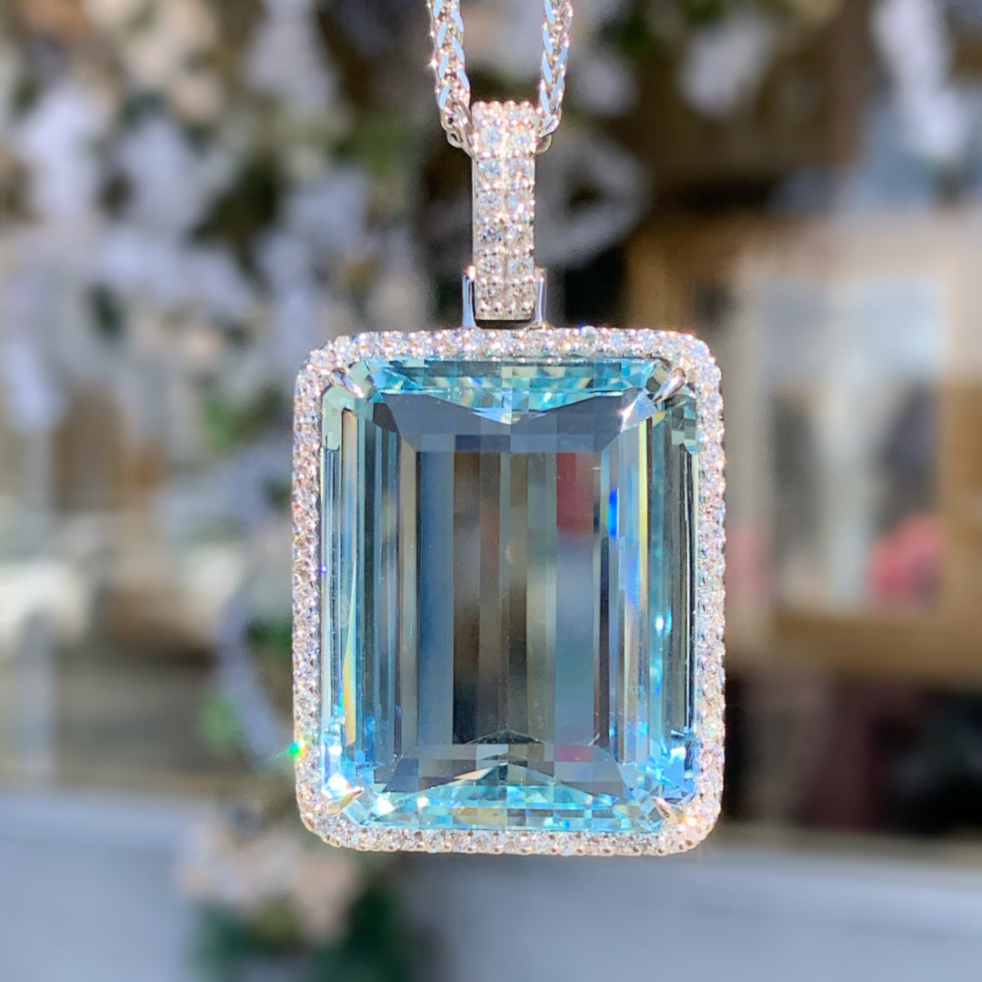14k White Gold Contemporary Aquamarine Pendant