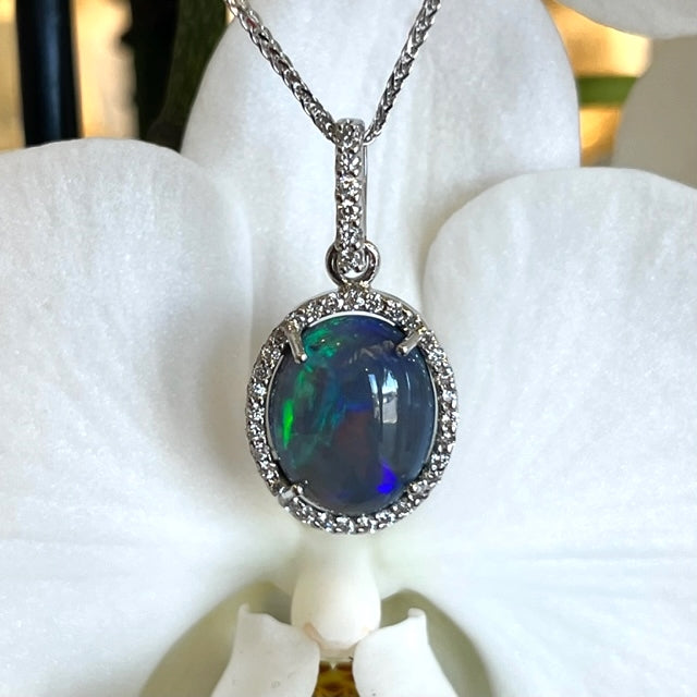 14k Rose Gold Halo Opal Pendant
