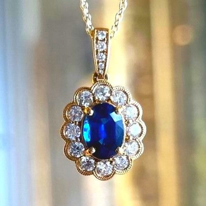 18k Yellow Gold Halo Sapphire Pendant