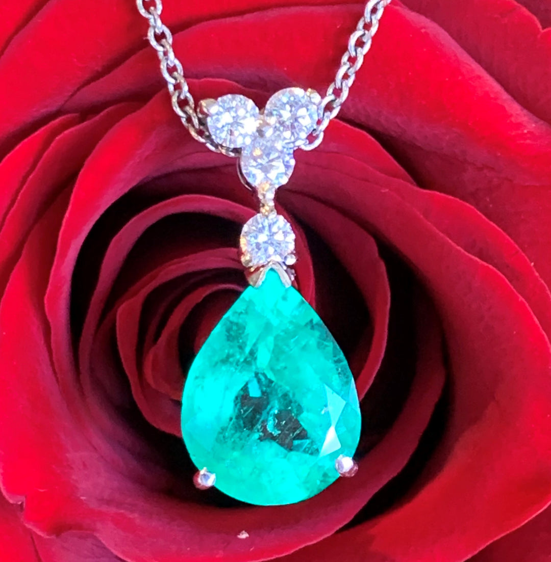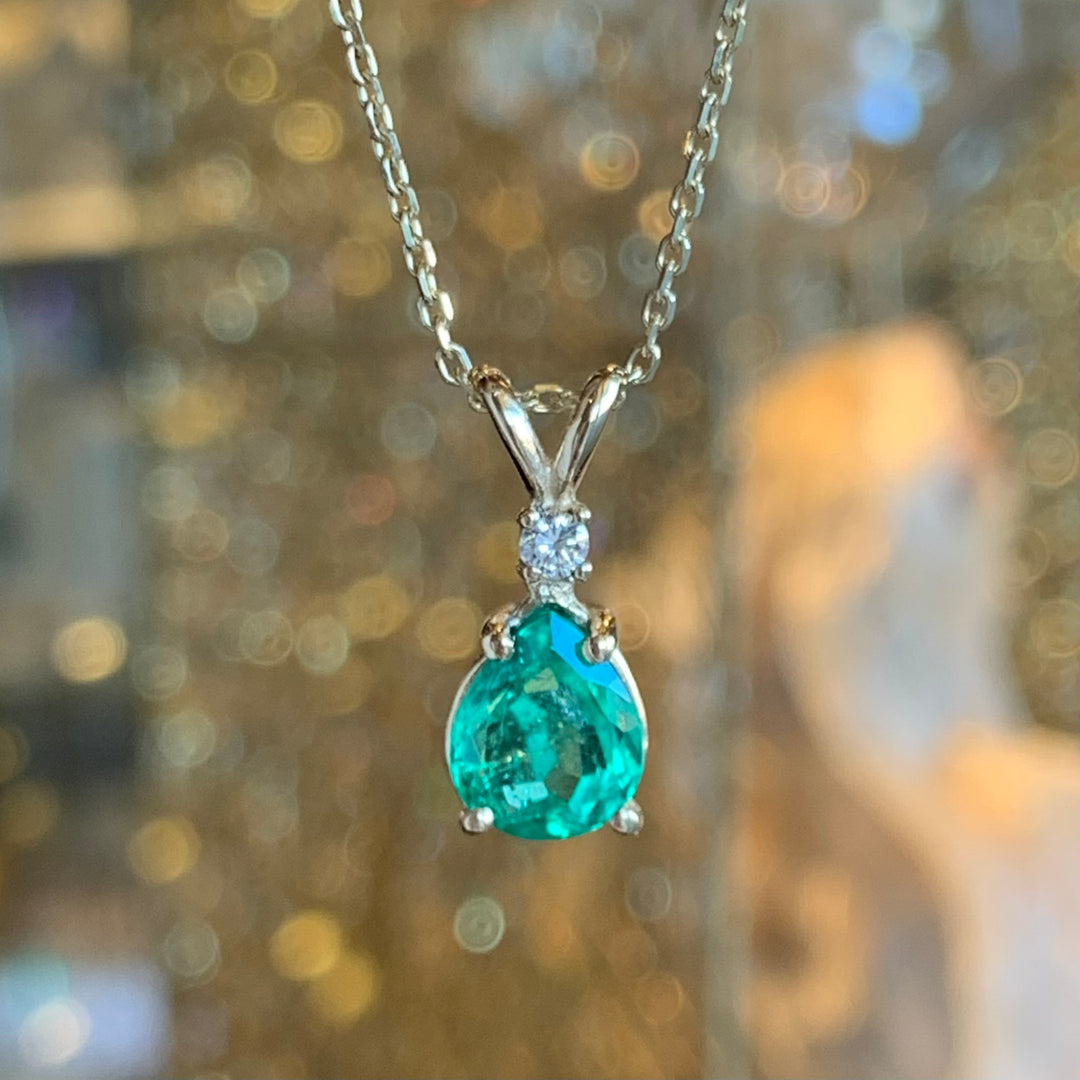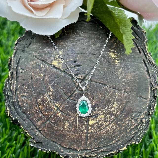 14k White Gold Drop Emerald Pendant