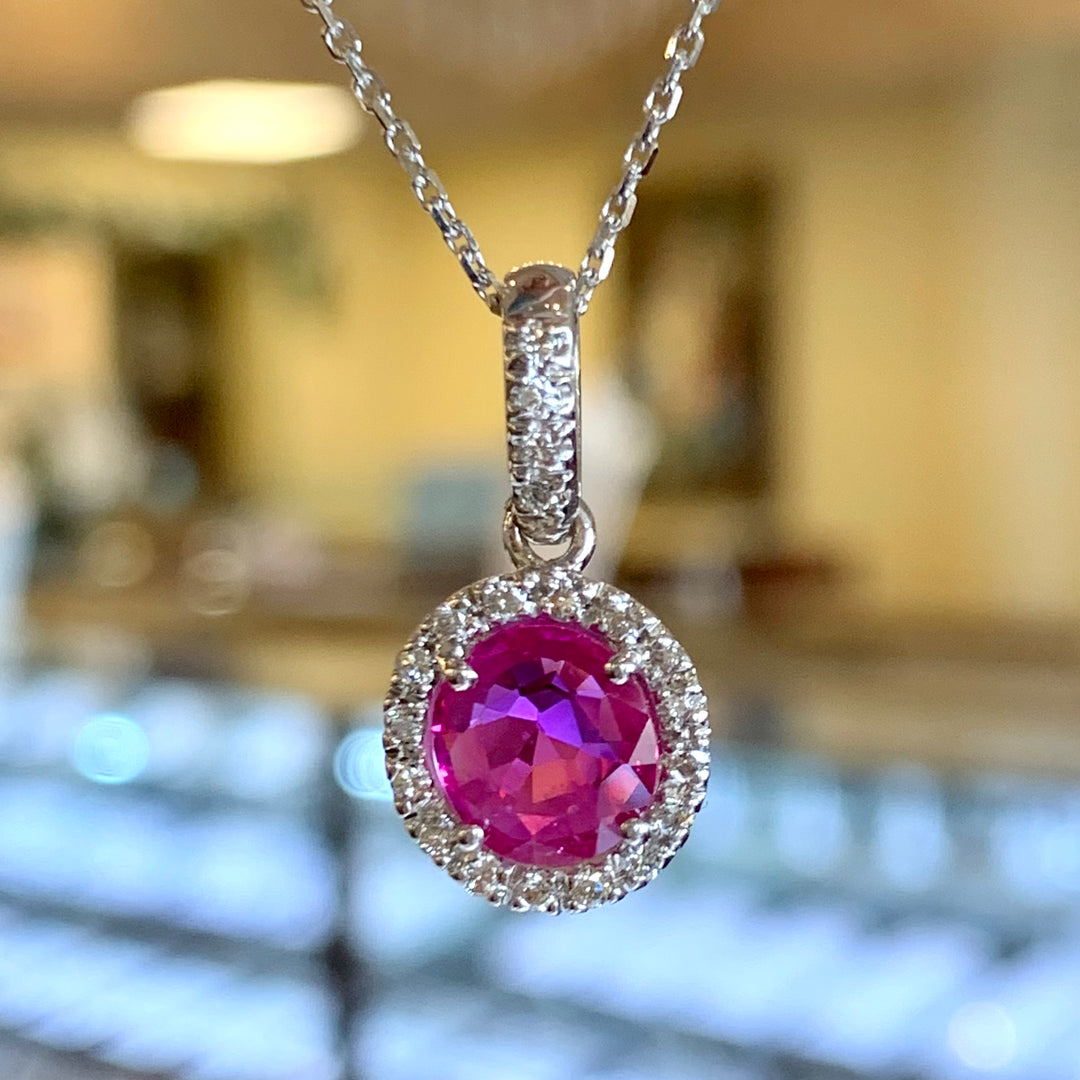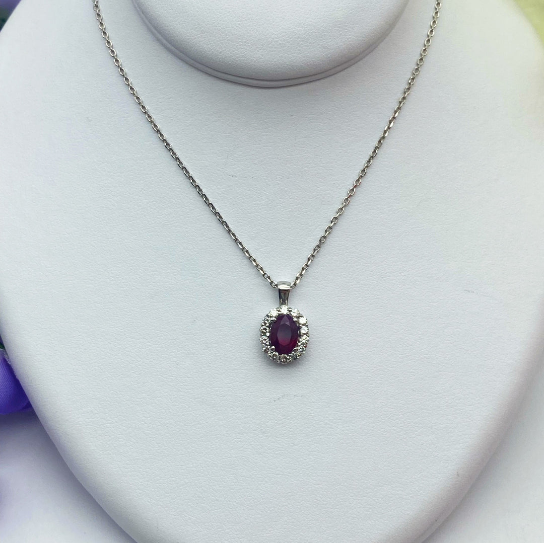 14k White Gold Halo Ruby Pendant
