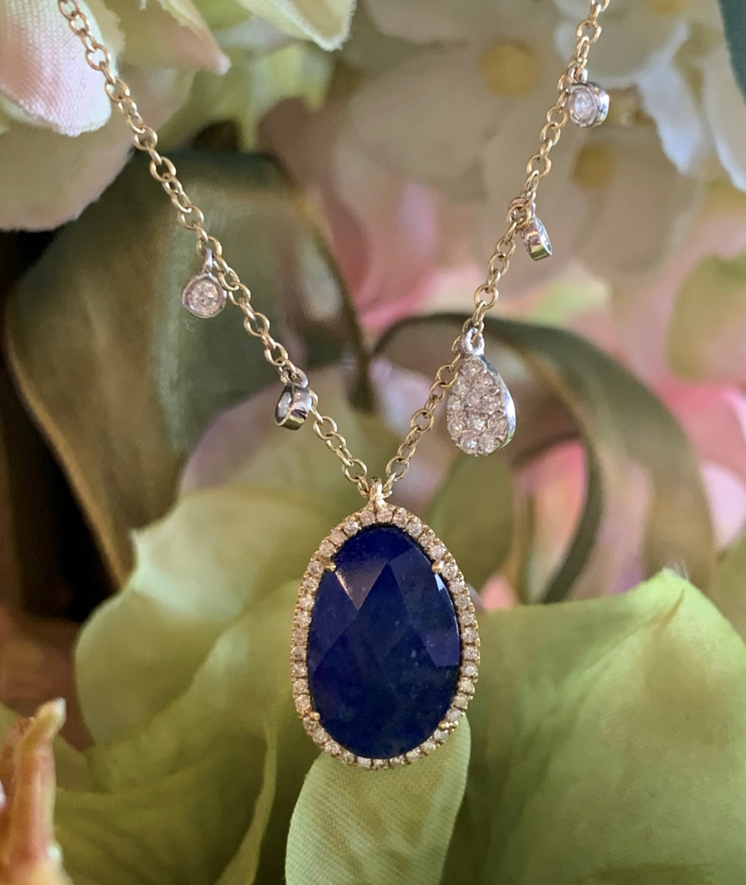 14k Yellow Gold Lapis and Diamond Pendant