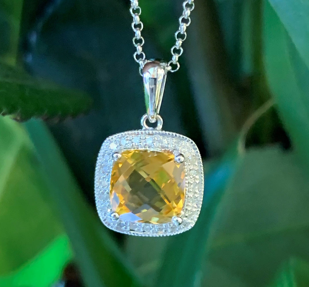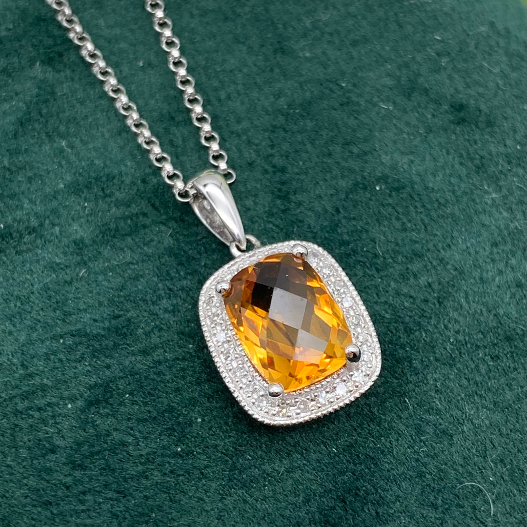 14k White Gold Halo Citrine Pendant