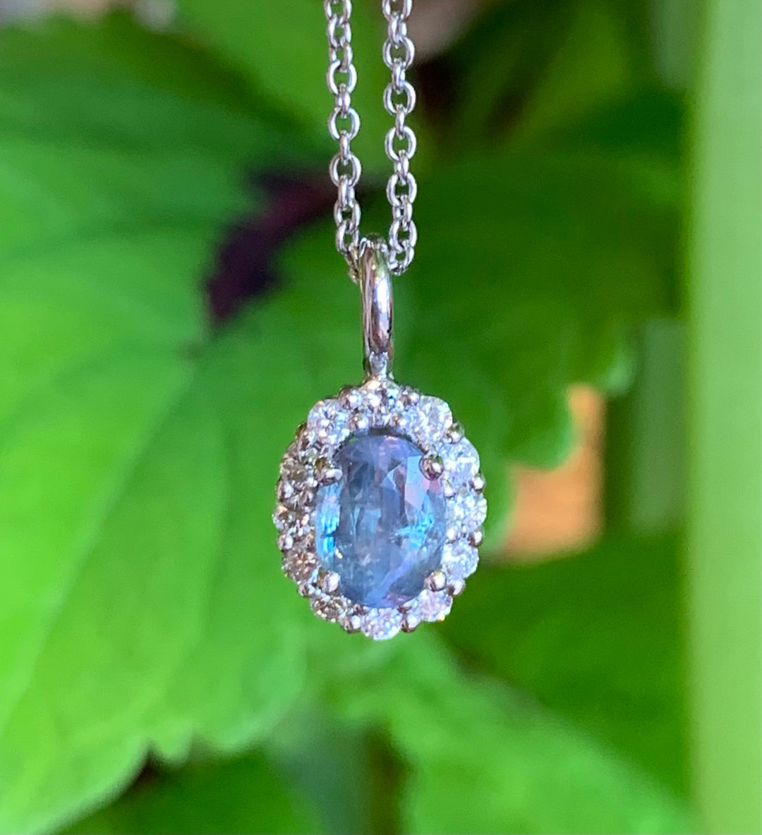 14k White Gold Alexandrite halo Pendant