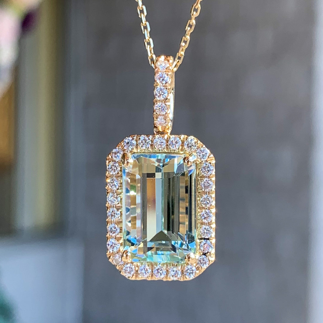 14k Yellow Gold Halo Aquamarine Pendant