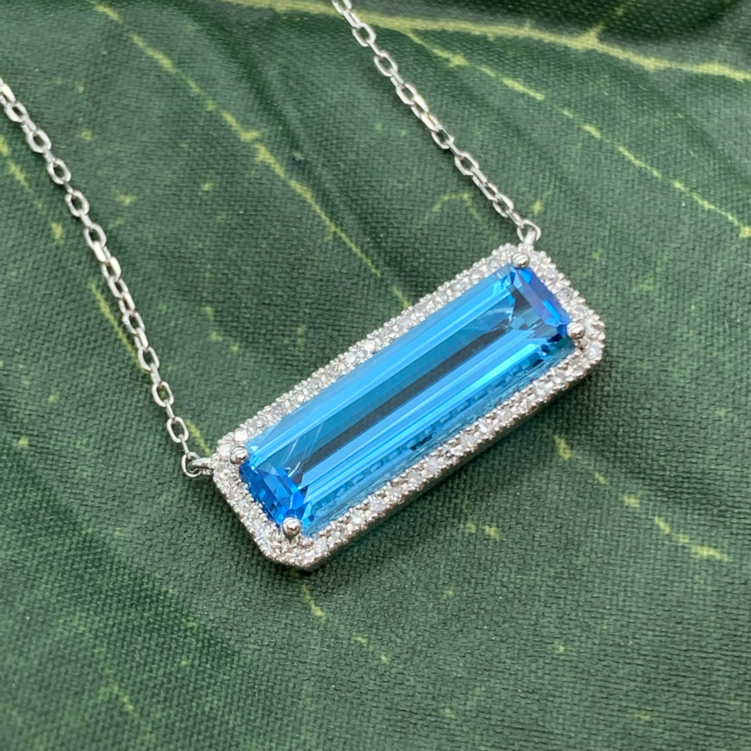 18k White Gold Contemporary Blue Topaz Pendant