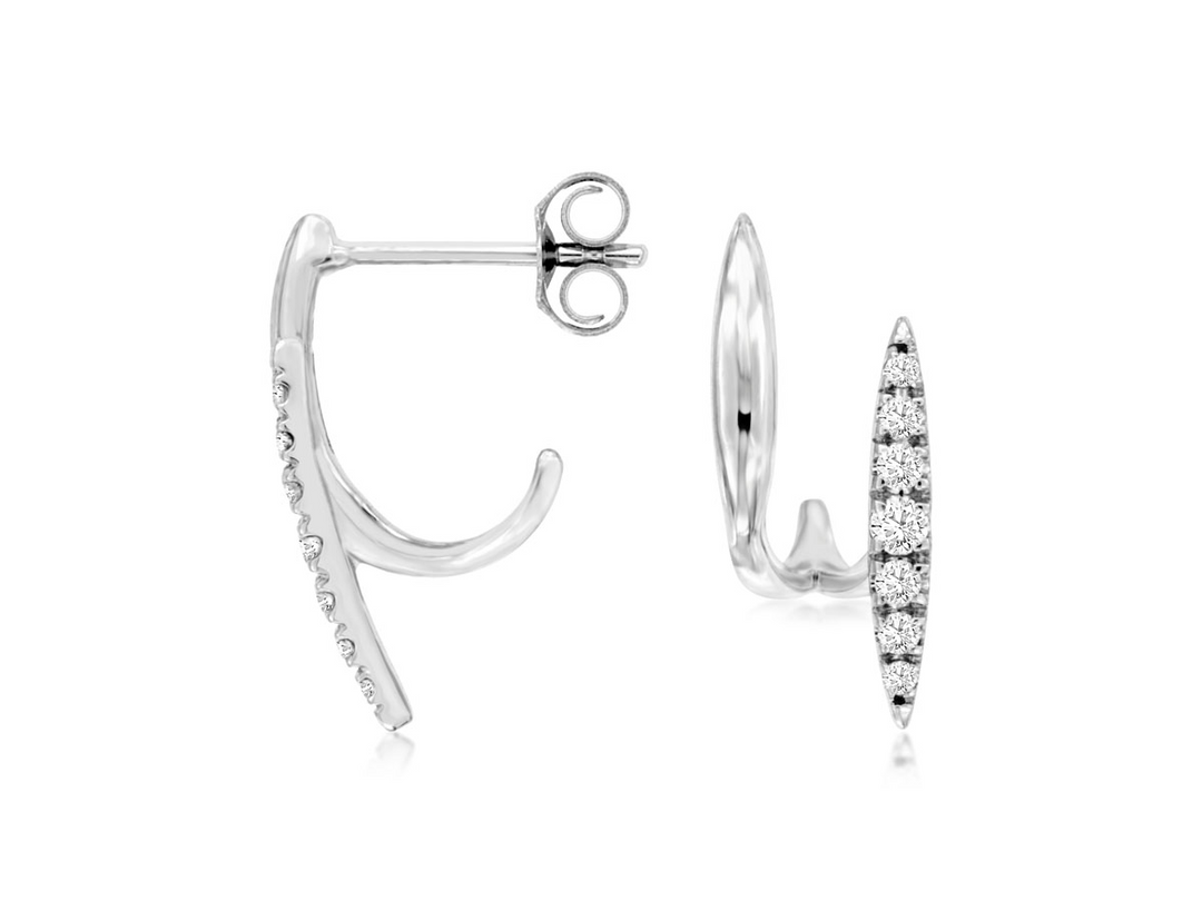 14k White Gold Diamond Huggie Earrings 0.24 cttw