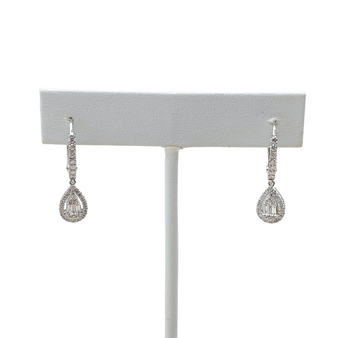 14k White Gold Lever Backs Diamond Earrings 0.75 cttw
