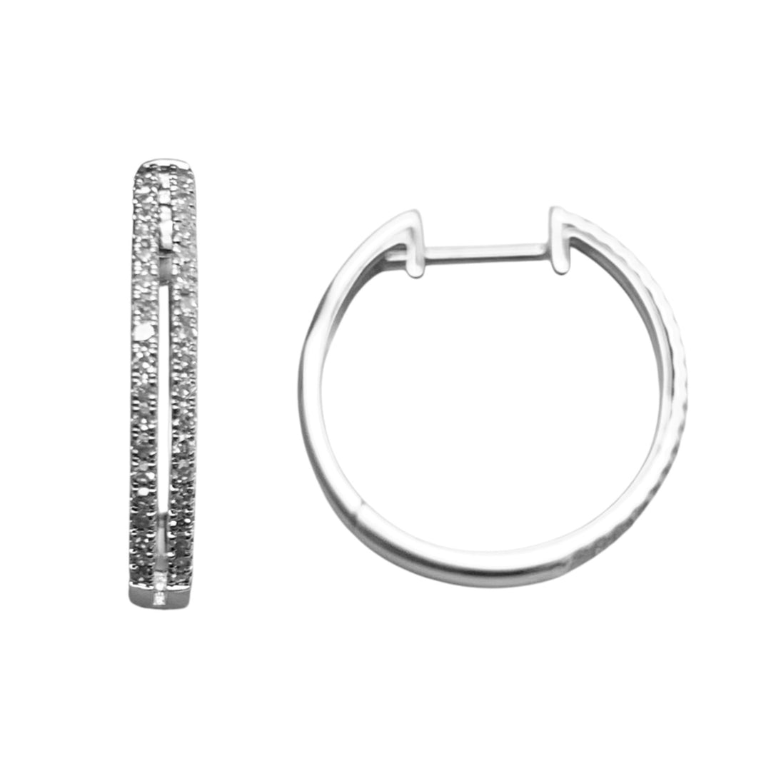 14k White Gold Medium Hoop Diamond Earrings 0.23 cttw
