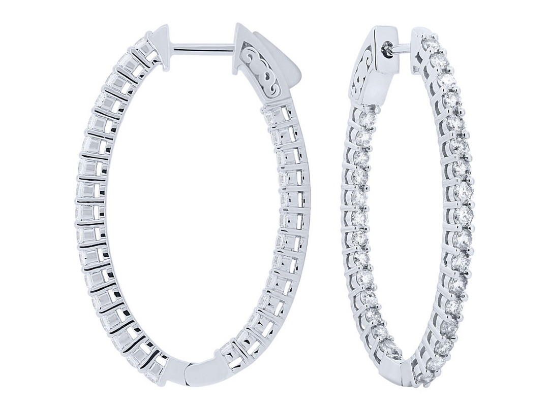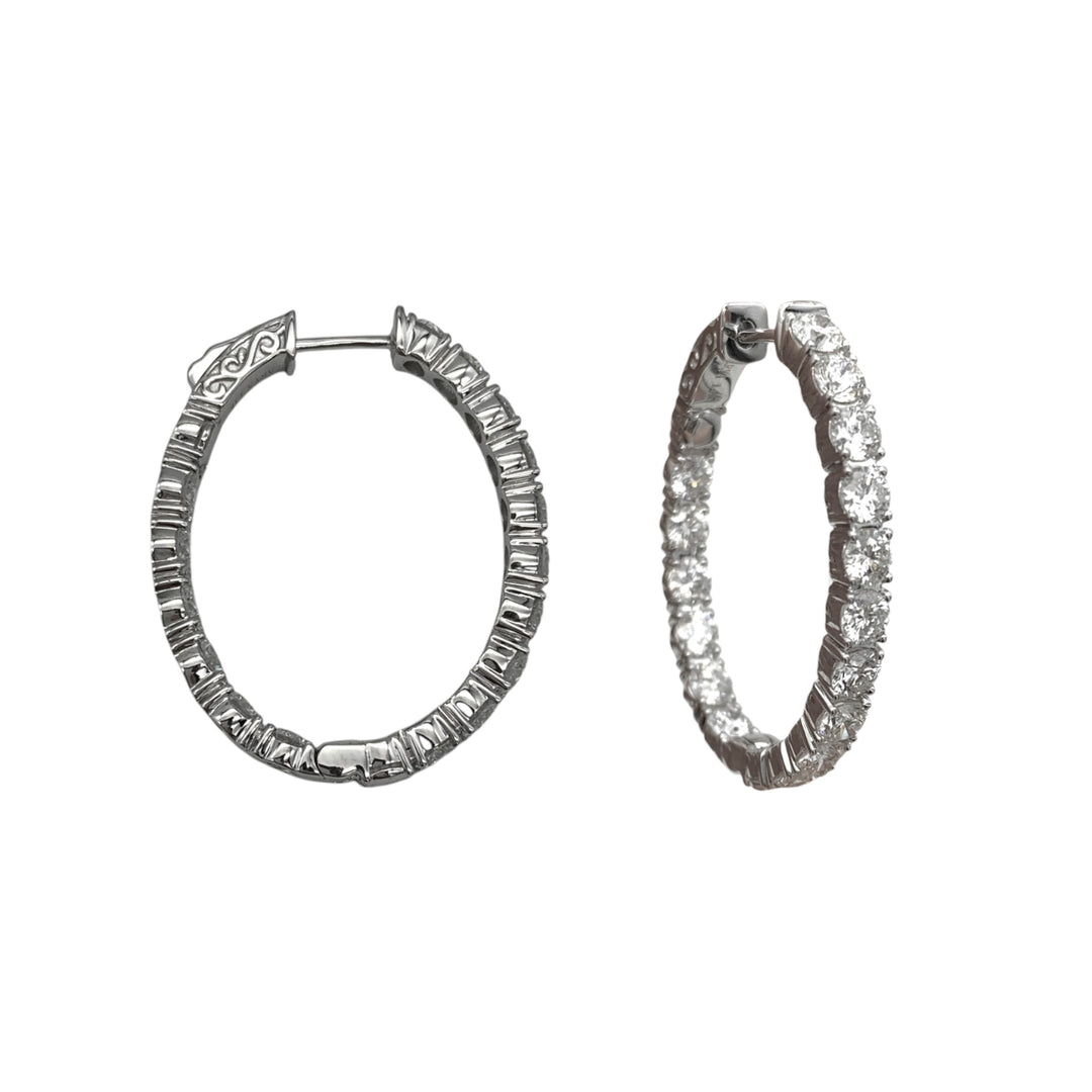 14k White Gold Medium Hoop Diamond Earrings 5.00 cttw