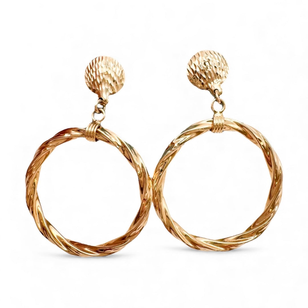 14k Yellow Gold Drop Sapphire Estate Earrings