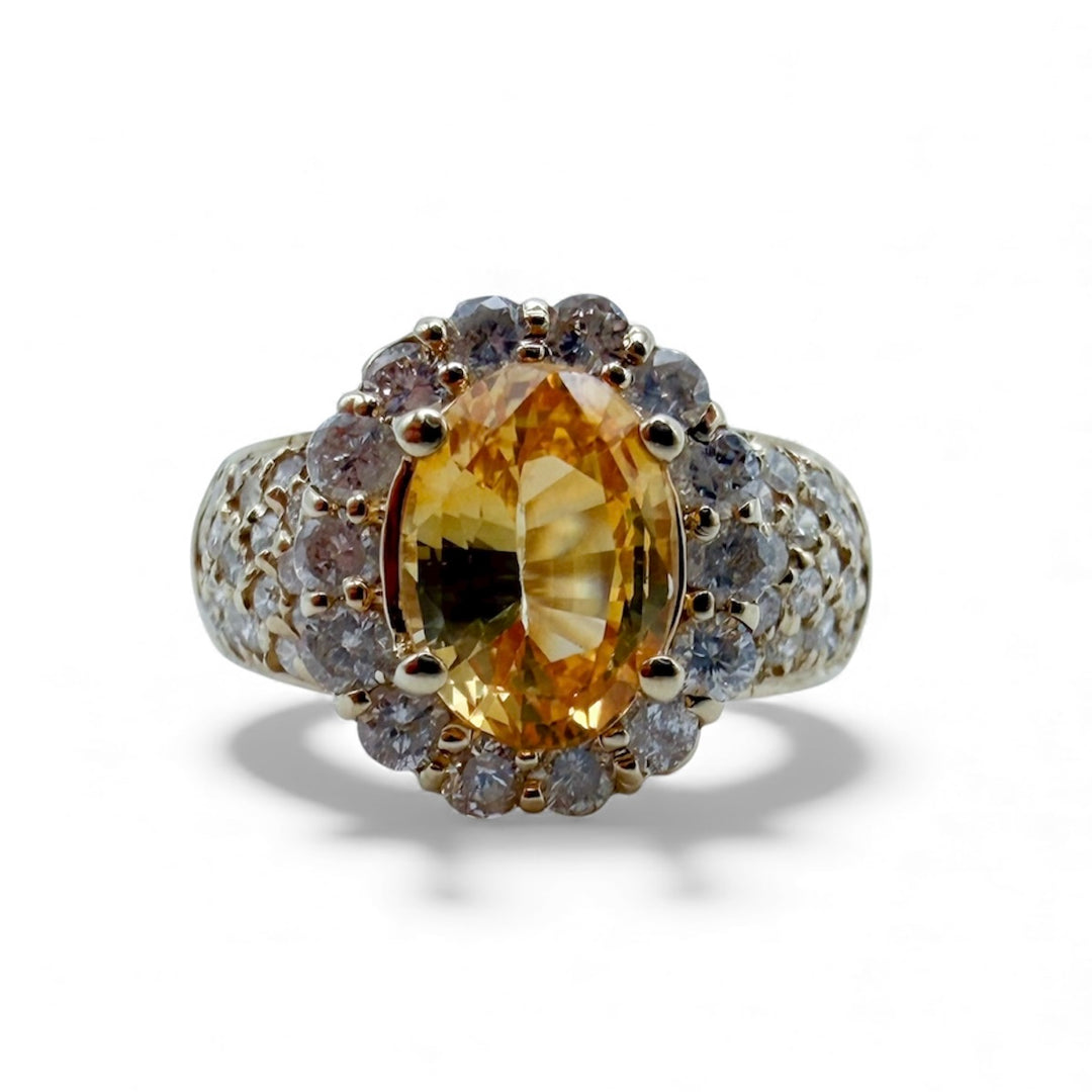 14k Yellow Gold Halo Yellow Sapphire Estate Ring