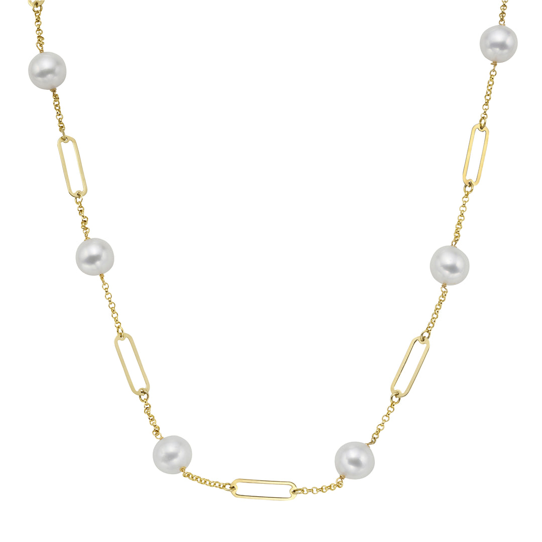14k Yellow Gold Paperclip Pearl Necklace