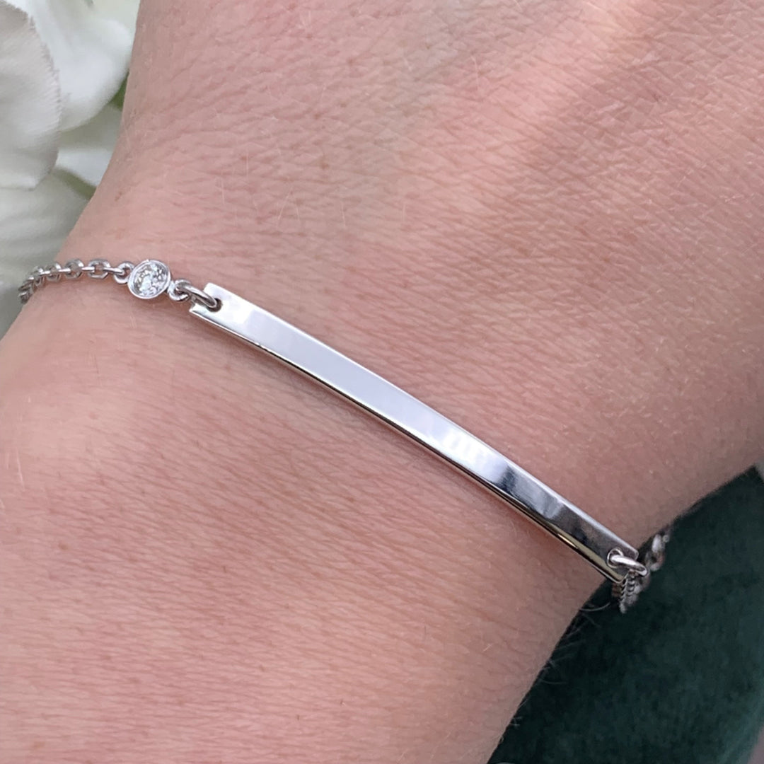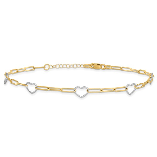 14k White Gold Cable Pave Heart Diamond Bracelet
