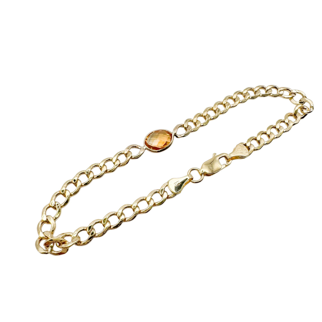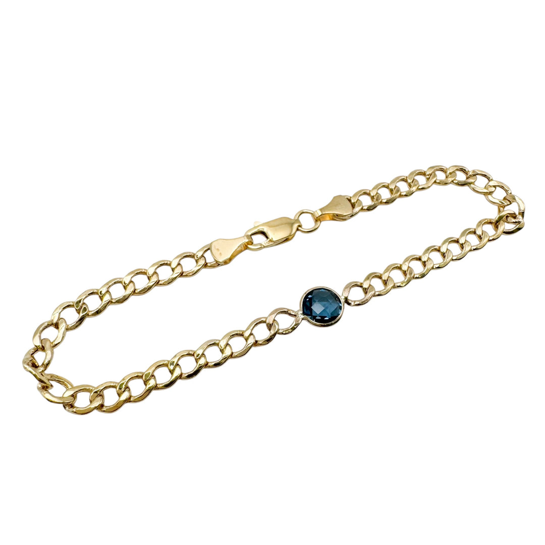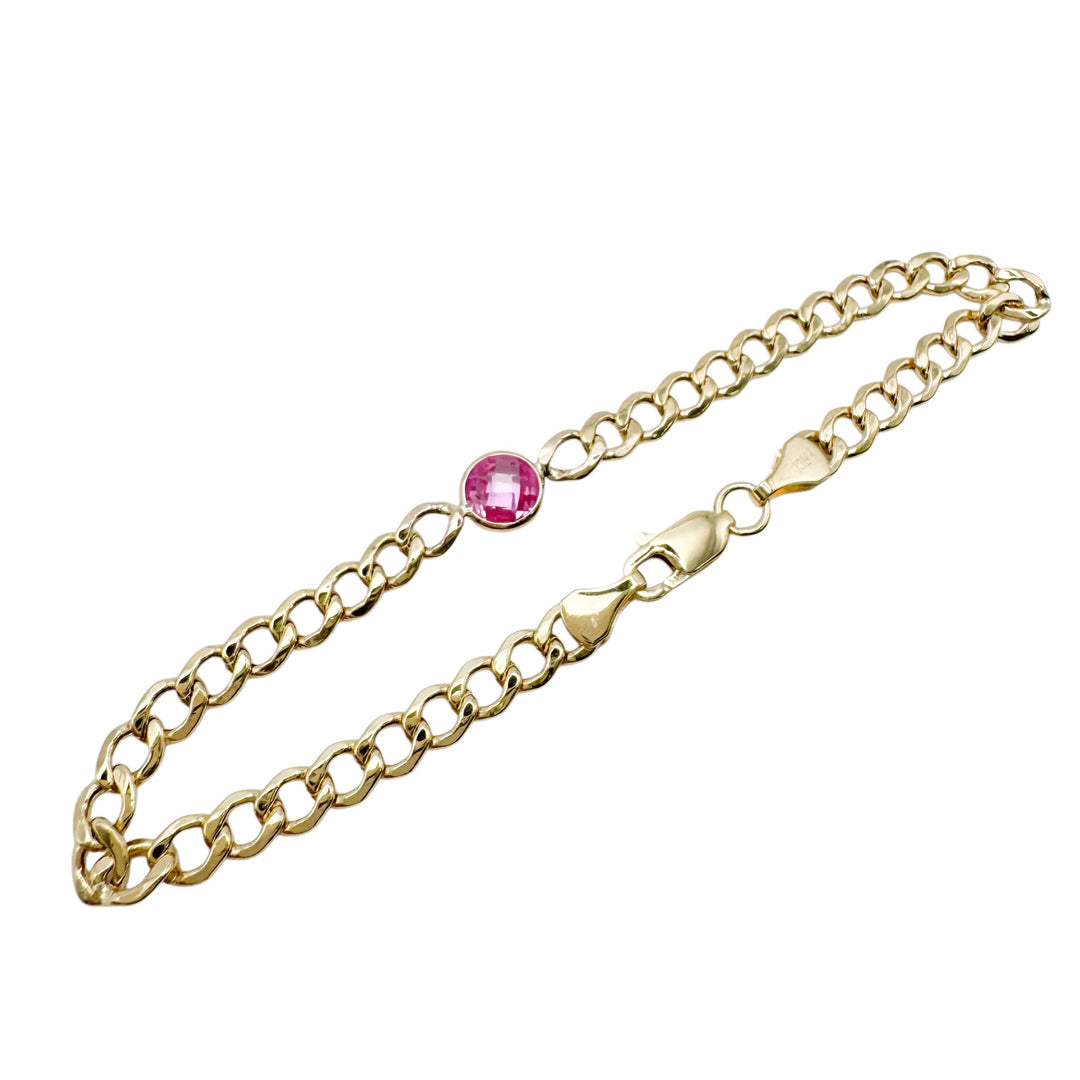 14k Yellow Gold Curb Colored Stone Bracelets