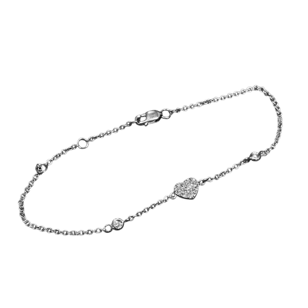14k White Gold Cable Pave Heart Diamond Bracelet