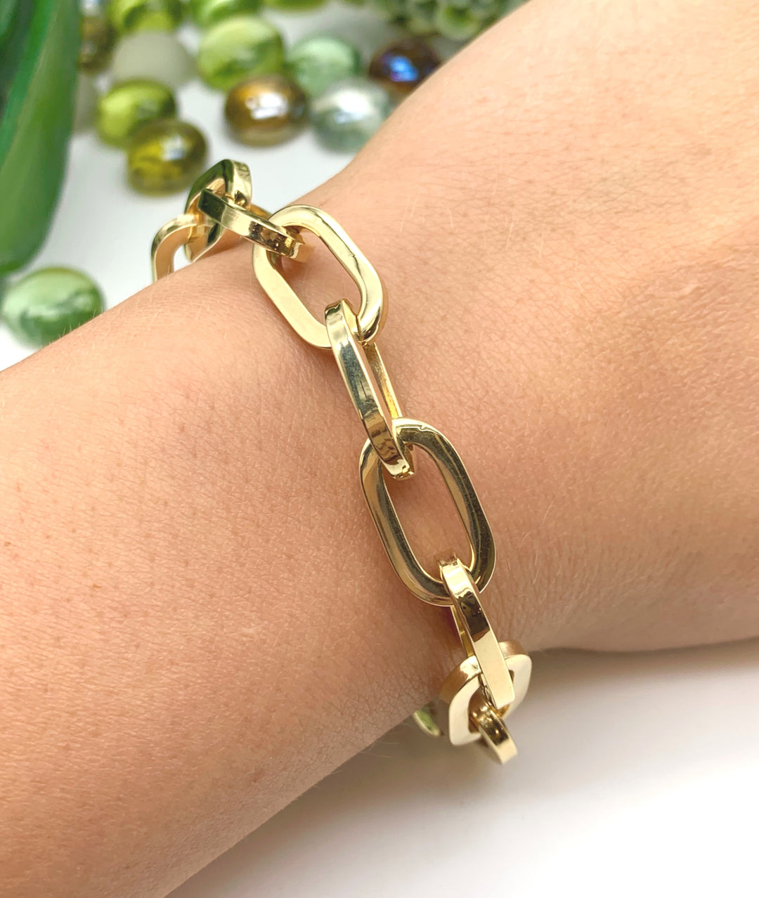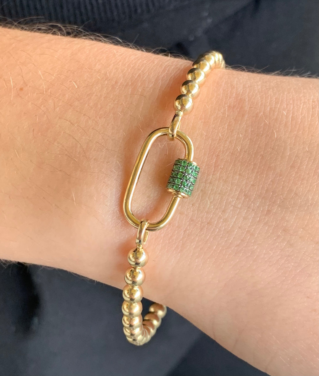 14k Yellow Gold Paper Clip Colored Stone Bracelets
