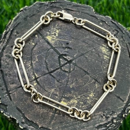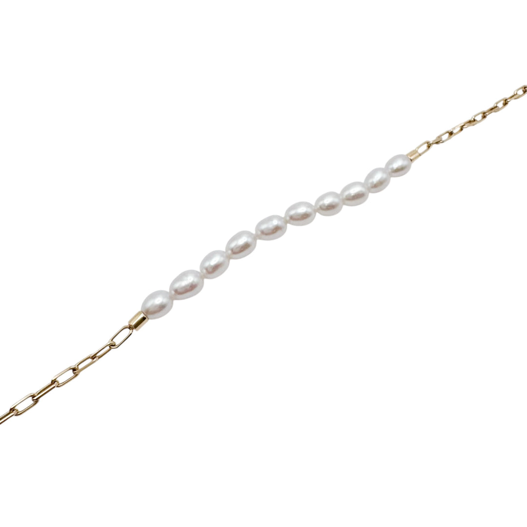 18k Yellow Gold Paper Clip Pearl Bracelet