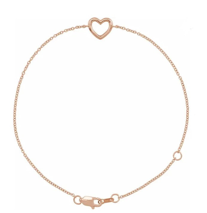 14k Rose Gold Open Heart Bracelet