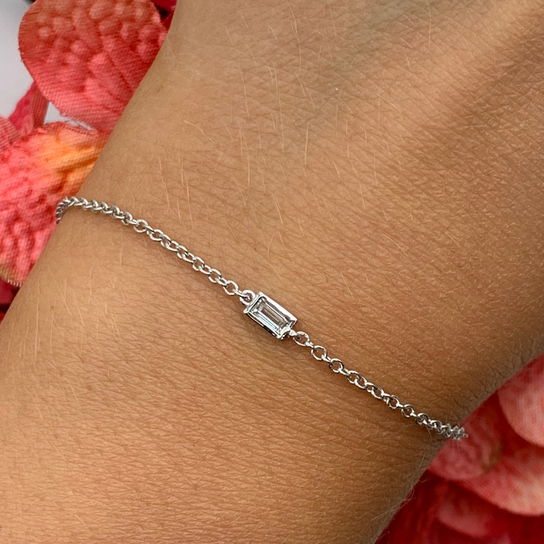 14k White Gold Bezel Baguette Diamond Bracelet