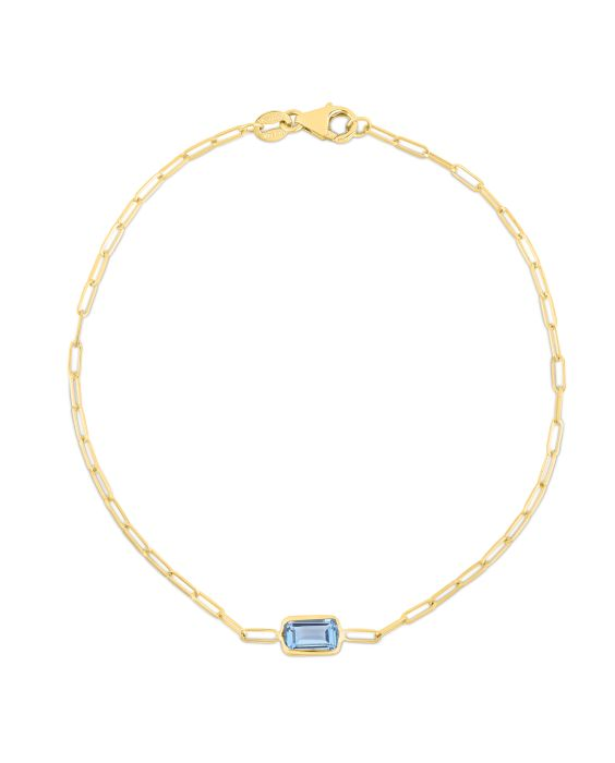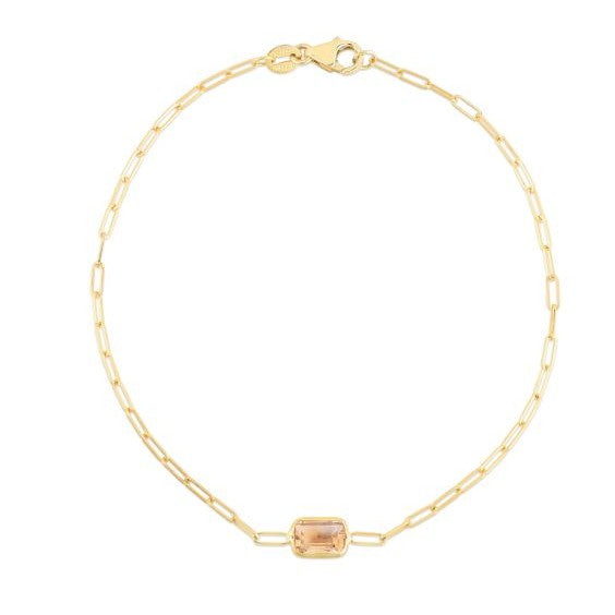 14k Yellow Gold Paper Clip Colored Stone Bracelets