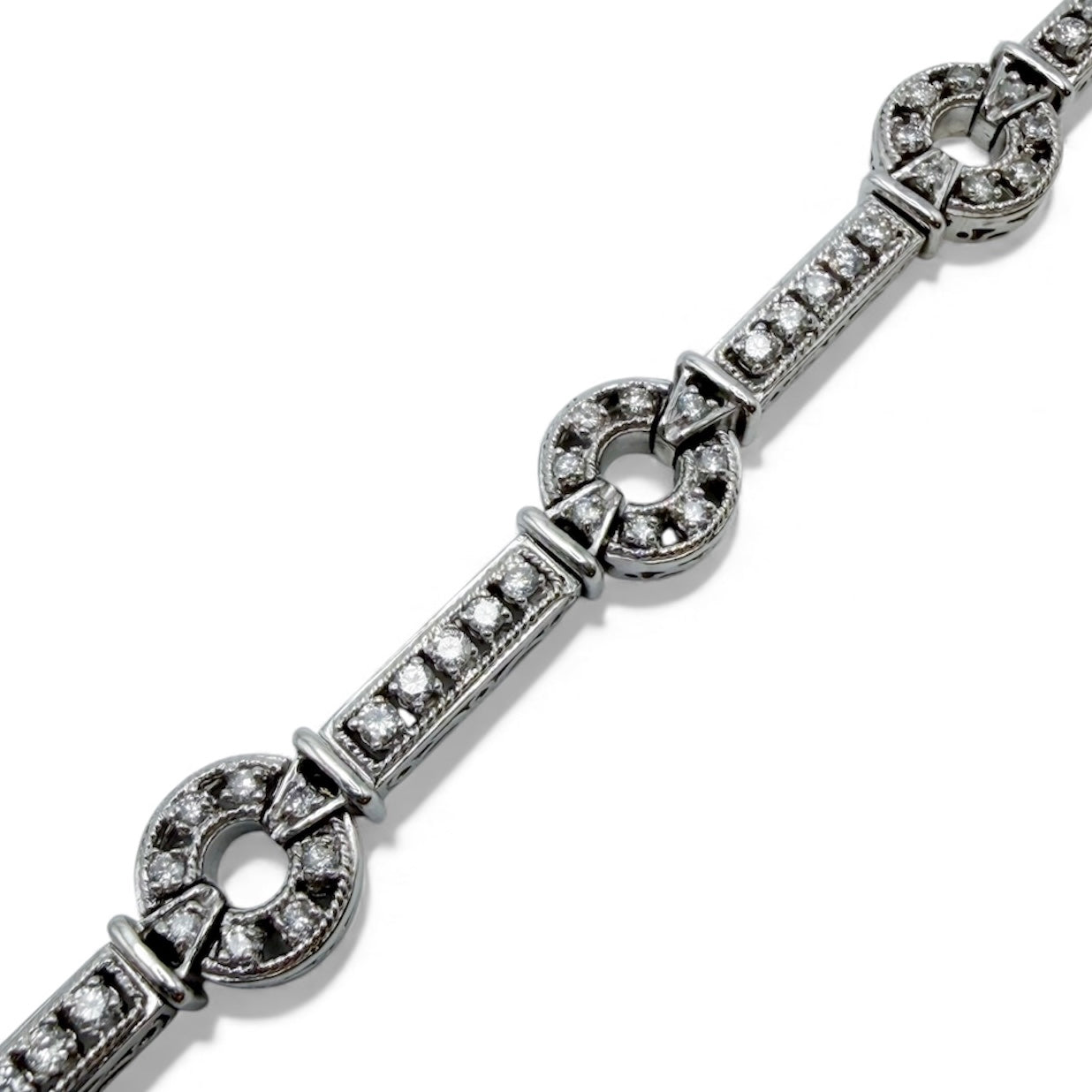 14k yellow gold vintage style link bracelet contains 1.68cttw in round diamonds 7 inches in length 13.1dwt