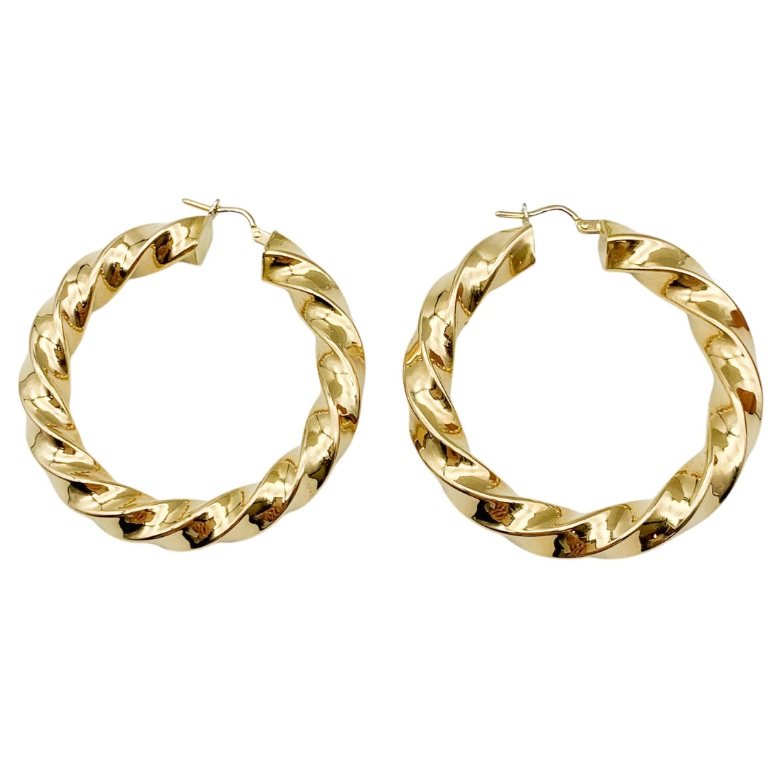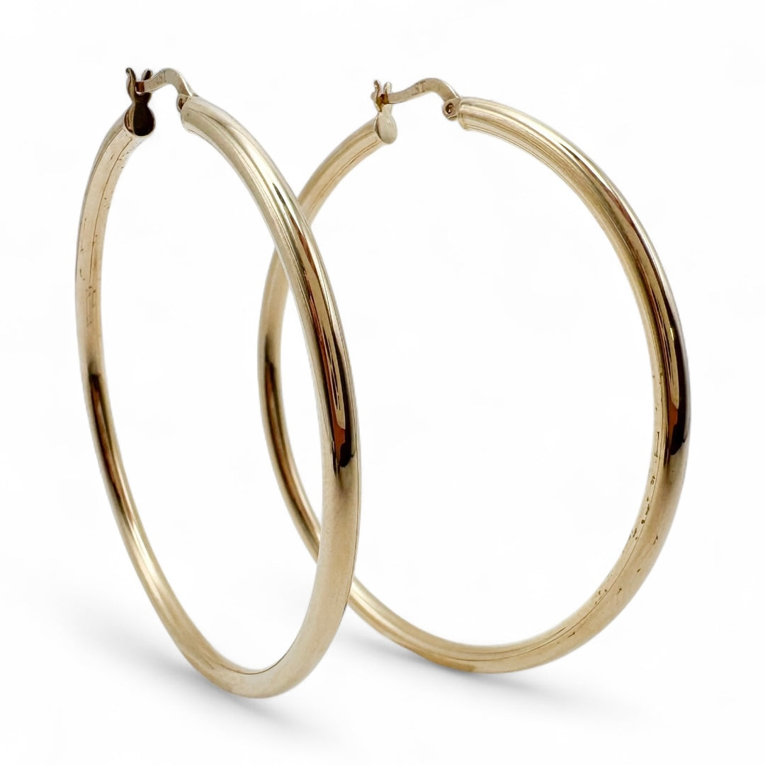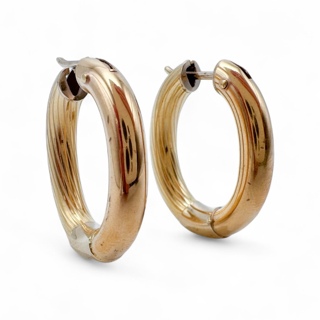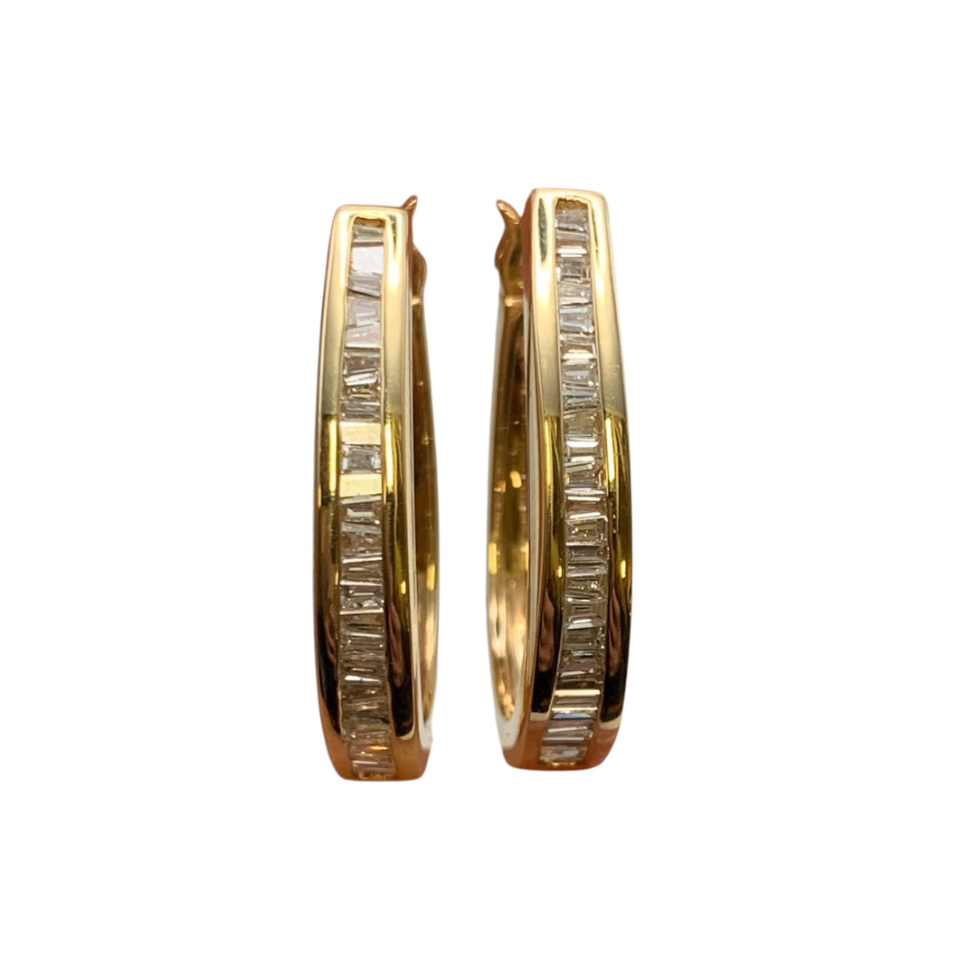 14k Yellow Gold Medium Hoop Diamond Estate Earrings