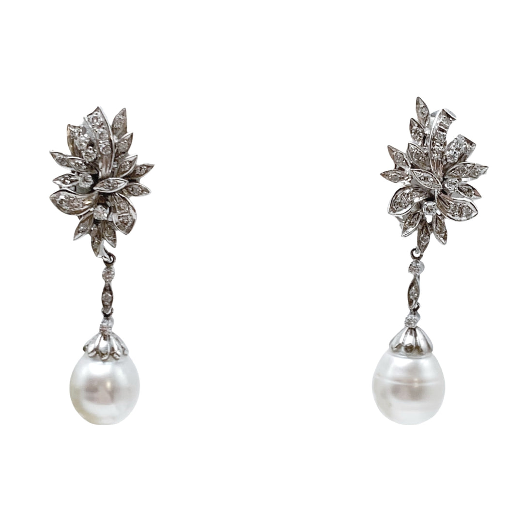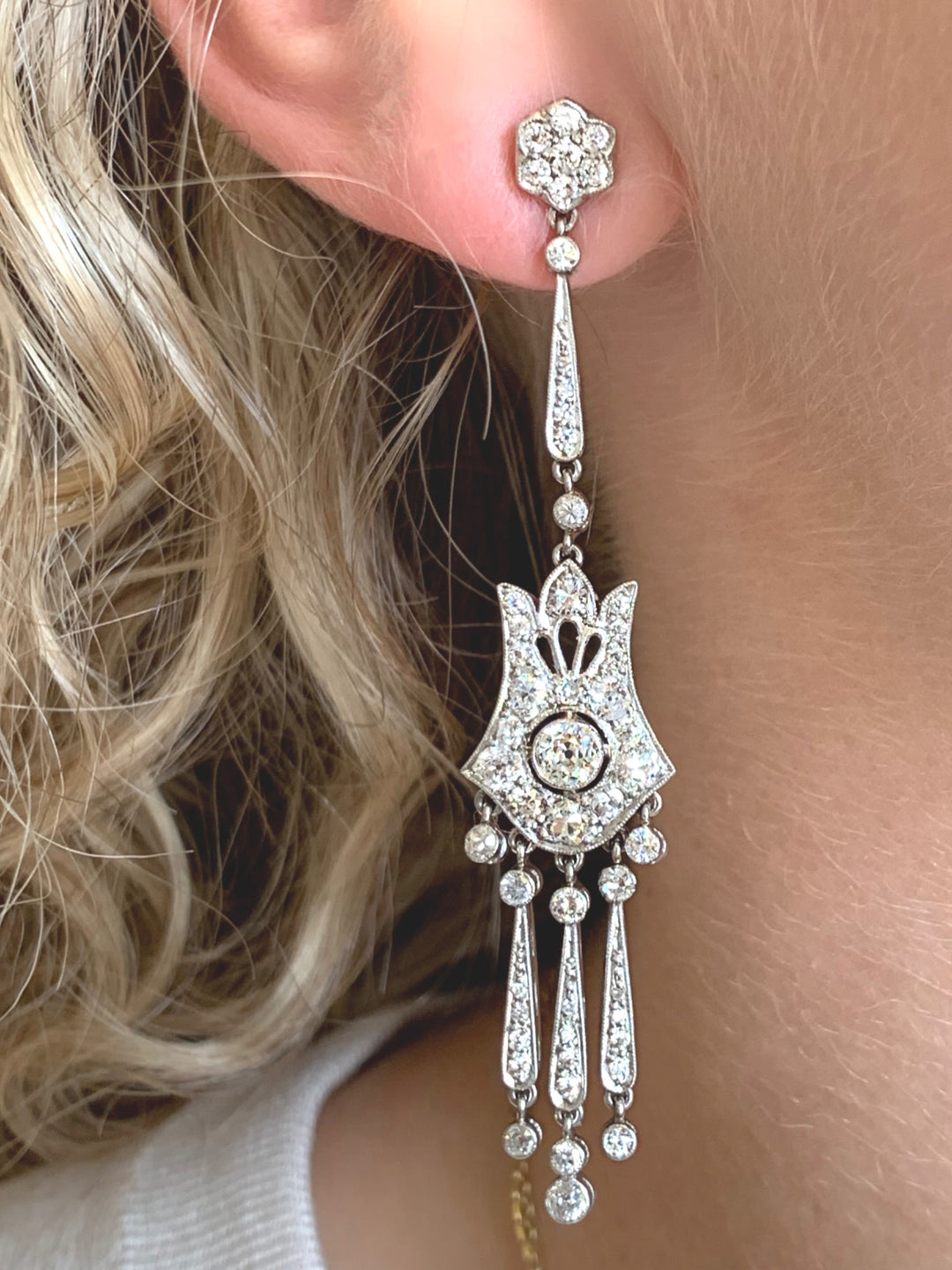 14k Yellow Gold Lever Backs Diamond Estate Earrings