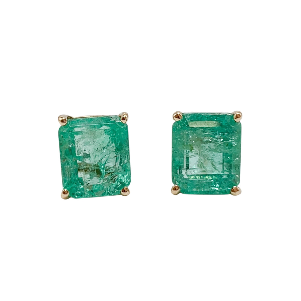 14k Yellow Gold Stud Emeralds Estate Earrings