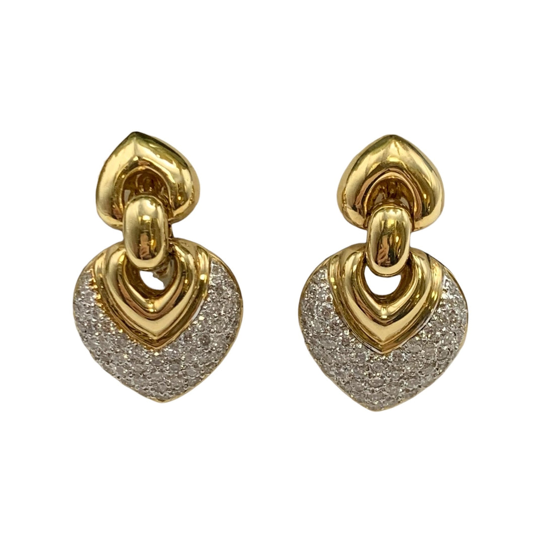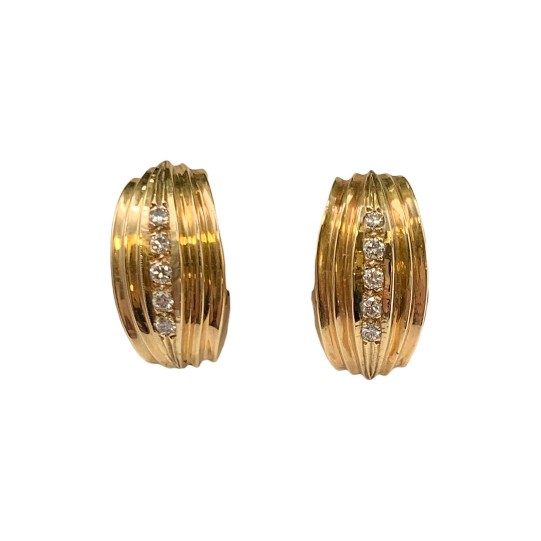 18k Yellow Gold Omega Backs Diamond Estate Earrings