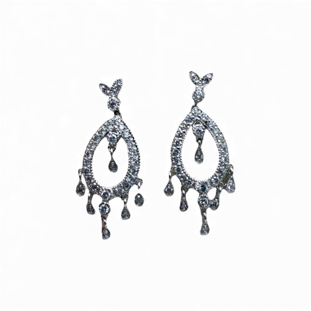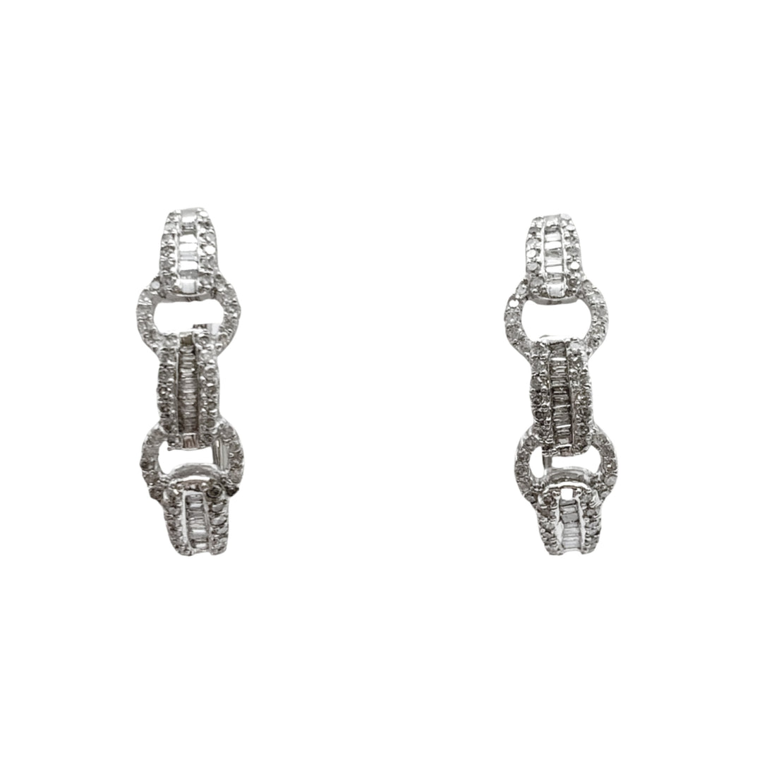 14k White Gold Medium Hoop Diamond Estate Earrings