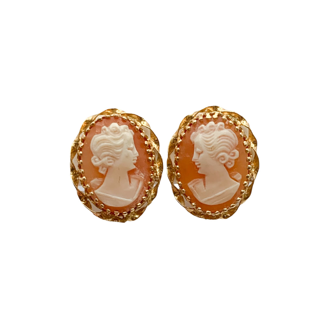 18k Yellow Gold Drop Cat Eye Estate Earrings