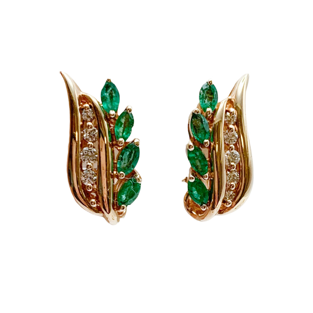 14k Yellow Gold Lever Back Emerald Estate Earrings