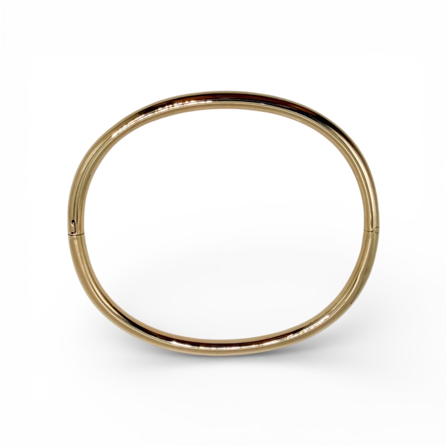 Estate semi-solid 14k yellow gold oval bangle bracelet, 3.8dwt