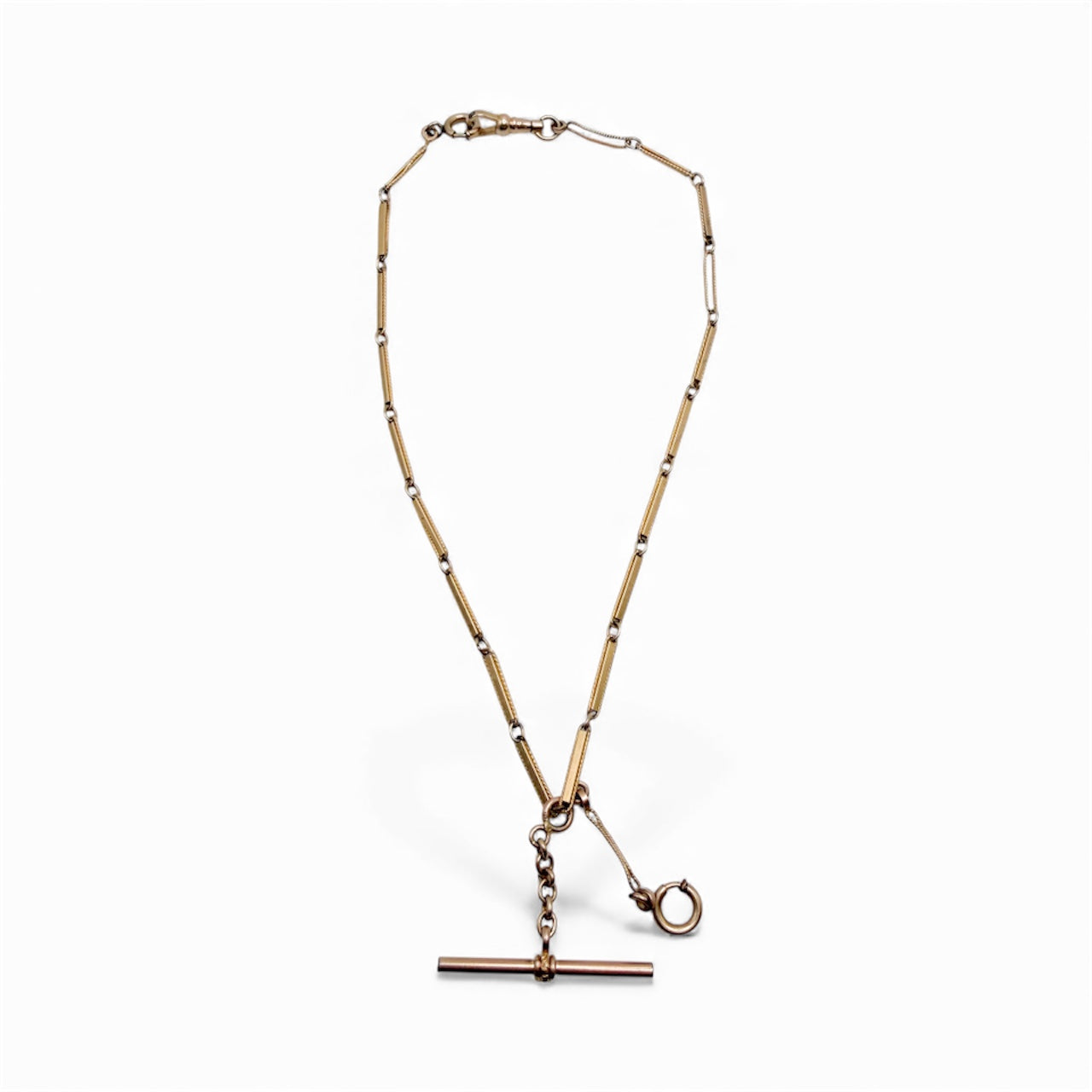 This 14k yellow gold antique pocket watch chain is 14 1/2 inches in length and weighs 8.3dwt