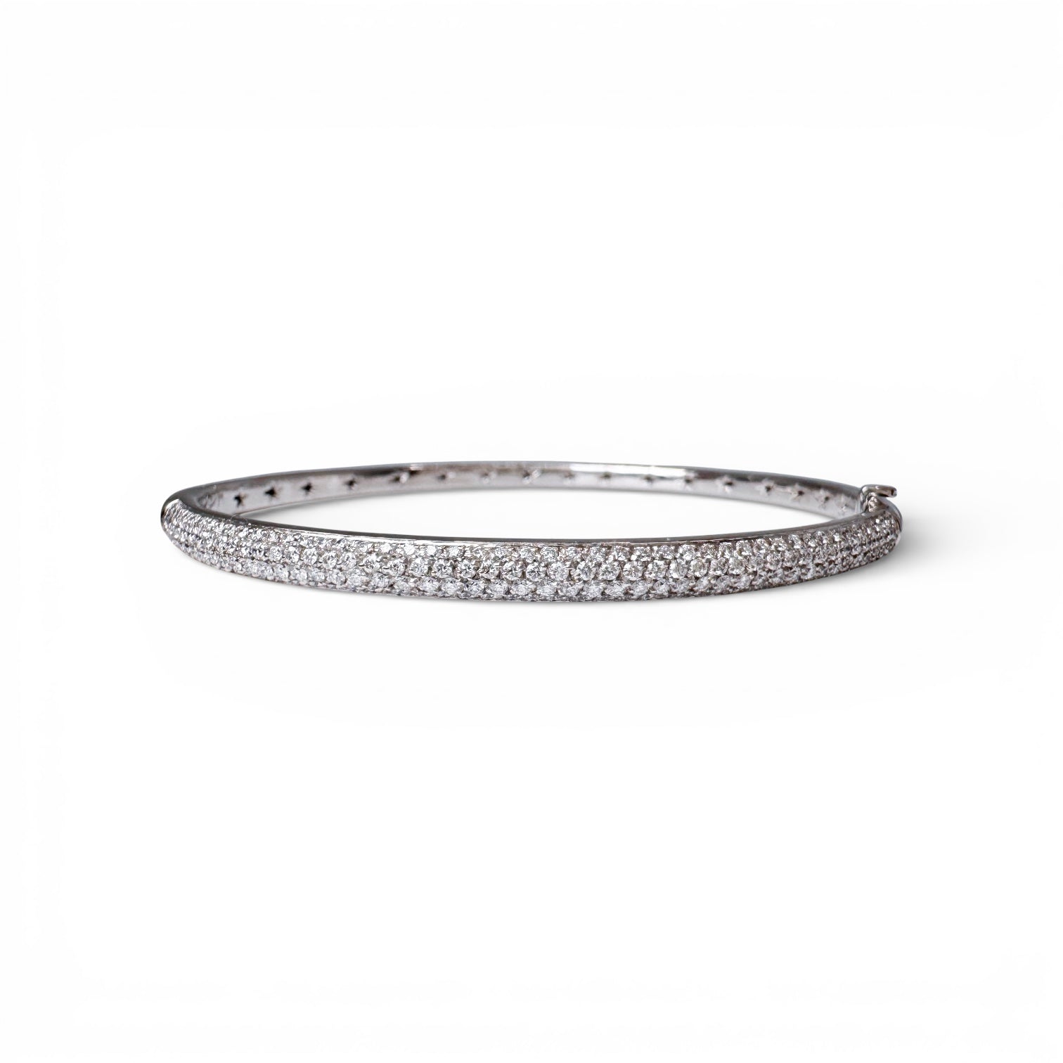 18k white gold bangle containing 1.50cttw in round pave set diamonds 13.5dwt 2 3/4" in length 2 1/4" in width
