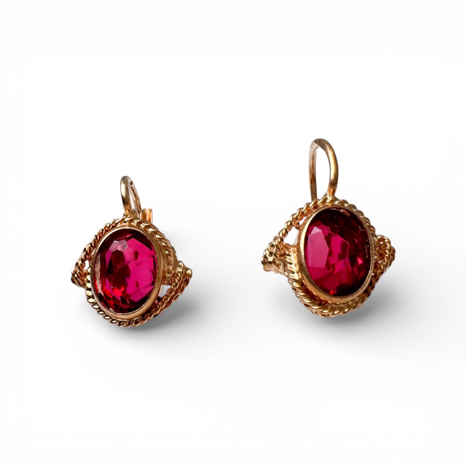 18k Yellow Gold Lever Back Rubies Estate Earrings