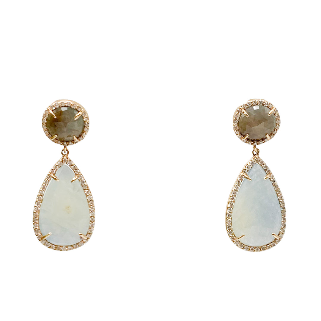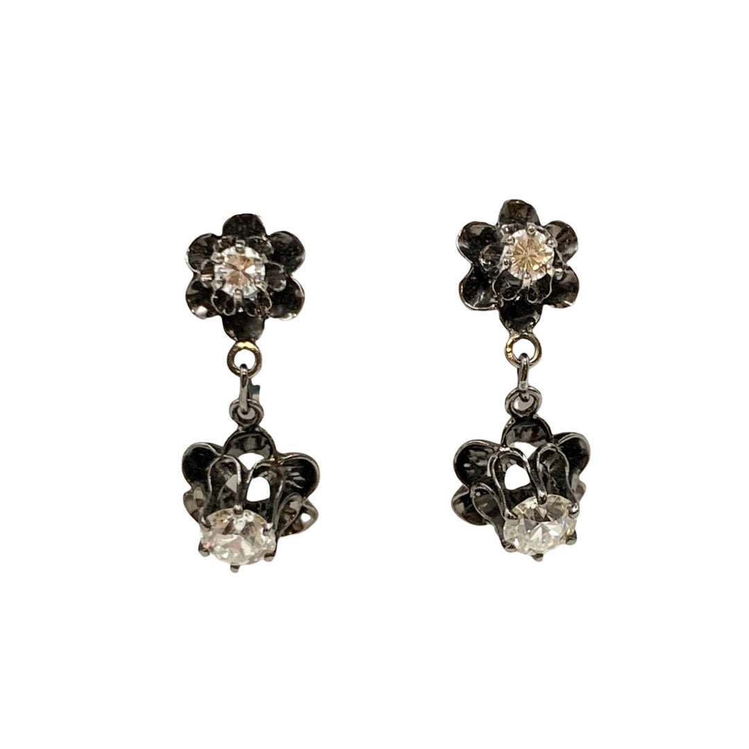 14k Two Tone Drop Diamond Estate Earrings