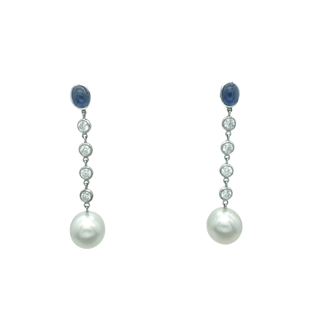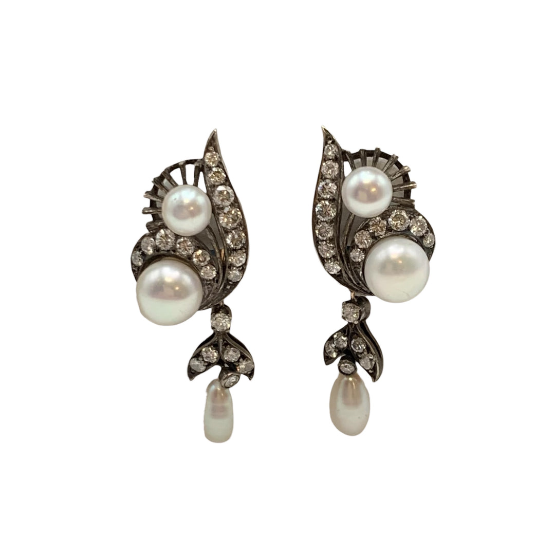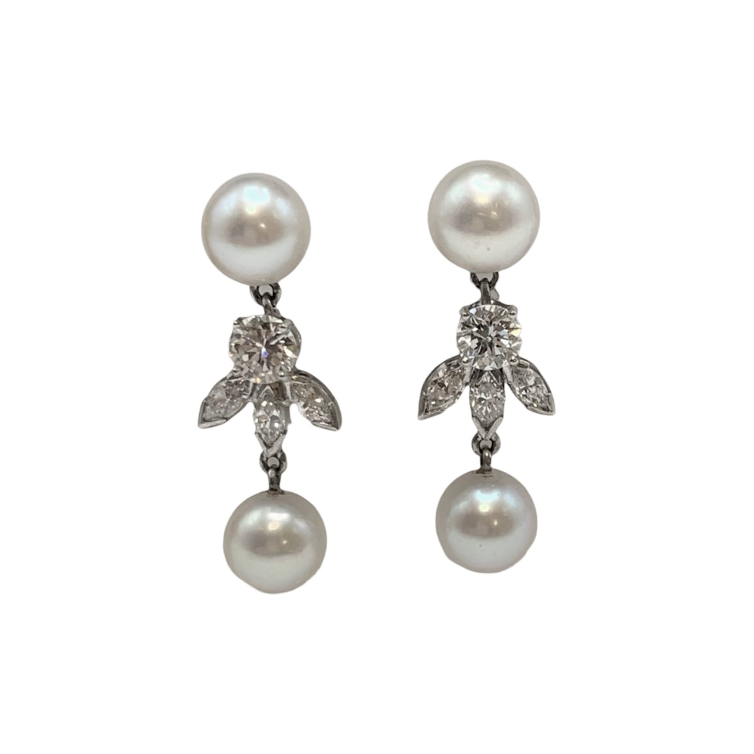 18k White Gold Drop Pearls Estate Earrings