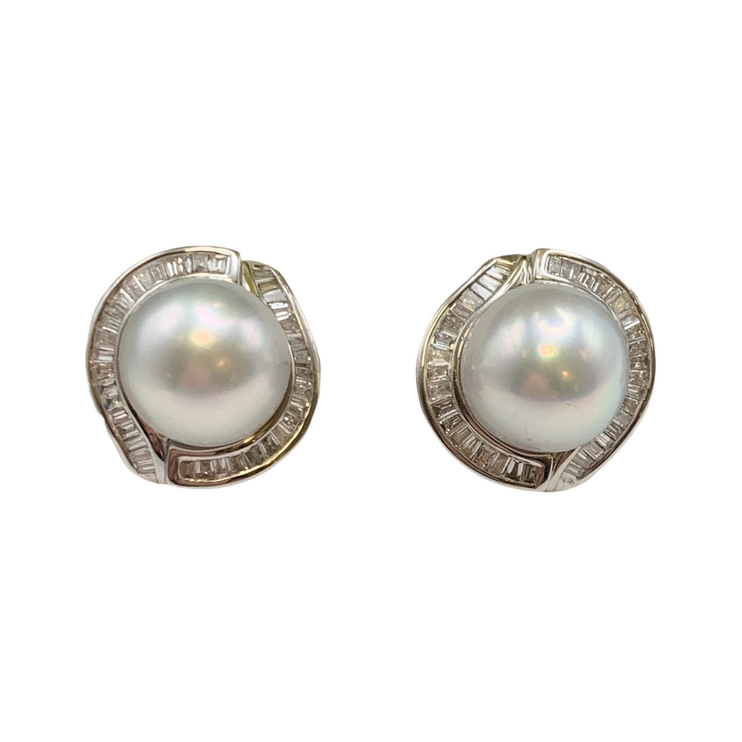 14k White Gold Omega Backs Pearl Estate Earrings