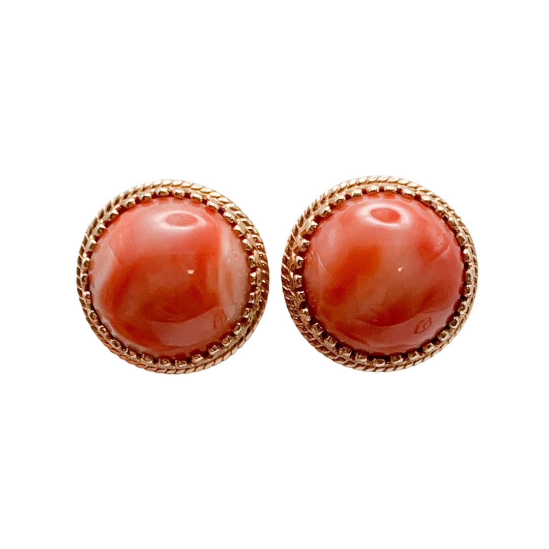 14k Yellow Gold Stud Coral Estate Earrings