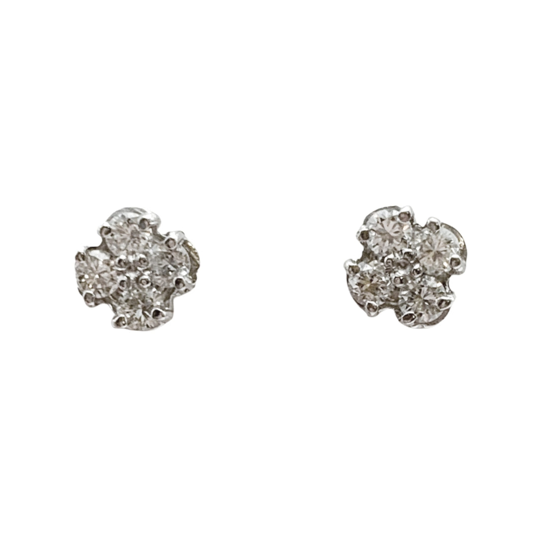 14k White Gold Cluster Diamond Estate Earrings