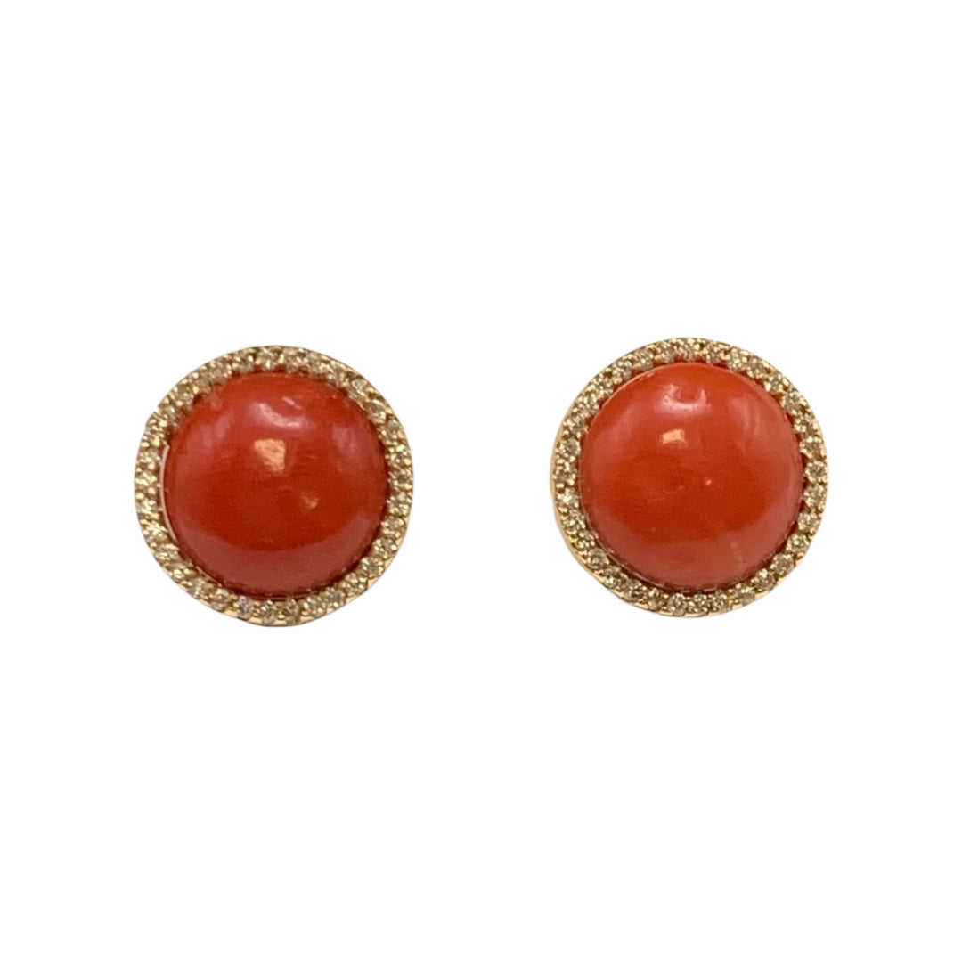 18k Yellow Gold Stud Coral Estate Earrings
