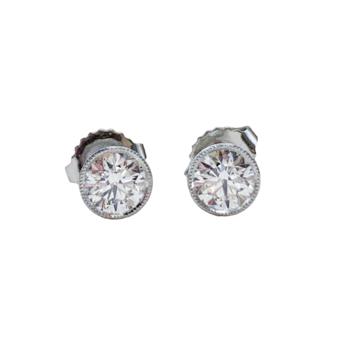 Platinum White Gold Bezel Diamond Estate Earrings